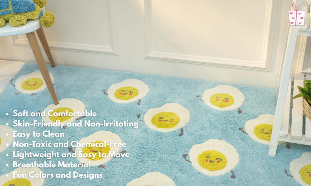 Cotton carpets are safest for children. They are gentle yet durable. Moreover, they can be easily washed at home, making maintenance a breeze.