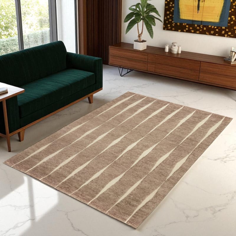 Crafted from 100% premium New Zealand wool, this stunning 8×10 hand-knotted rug is a true work of art. Featuring a sleek vertical stripe design in soothing beige and brown tones, it adds effortless texture, warmth, and sophistication to any interior.