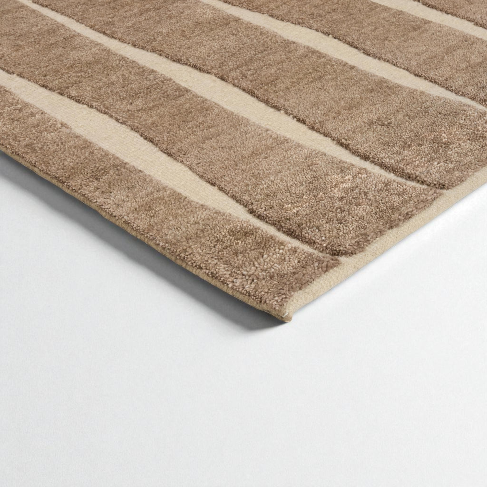 8×10 Hand Knotted Abstract Vertical Striped Modern Wool Rug, Contemporary Living Room Décor, Soft Beige and Brown Area Rug