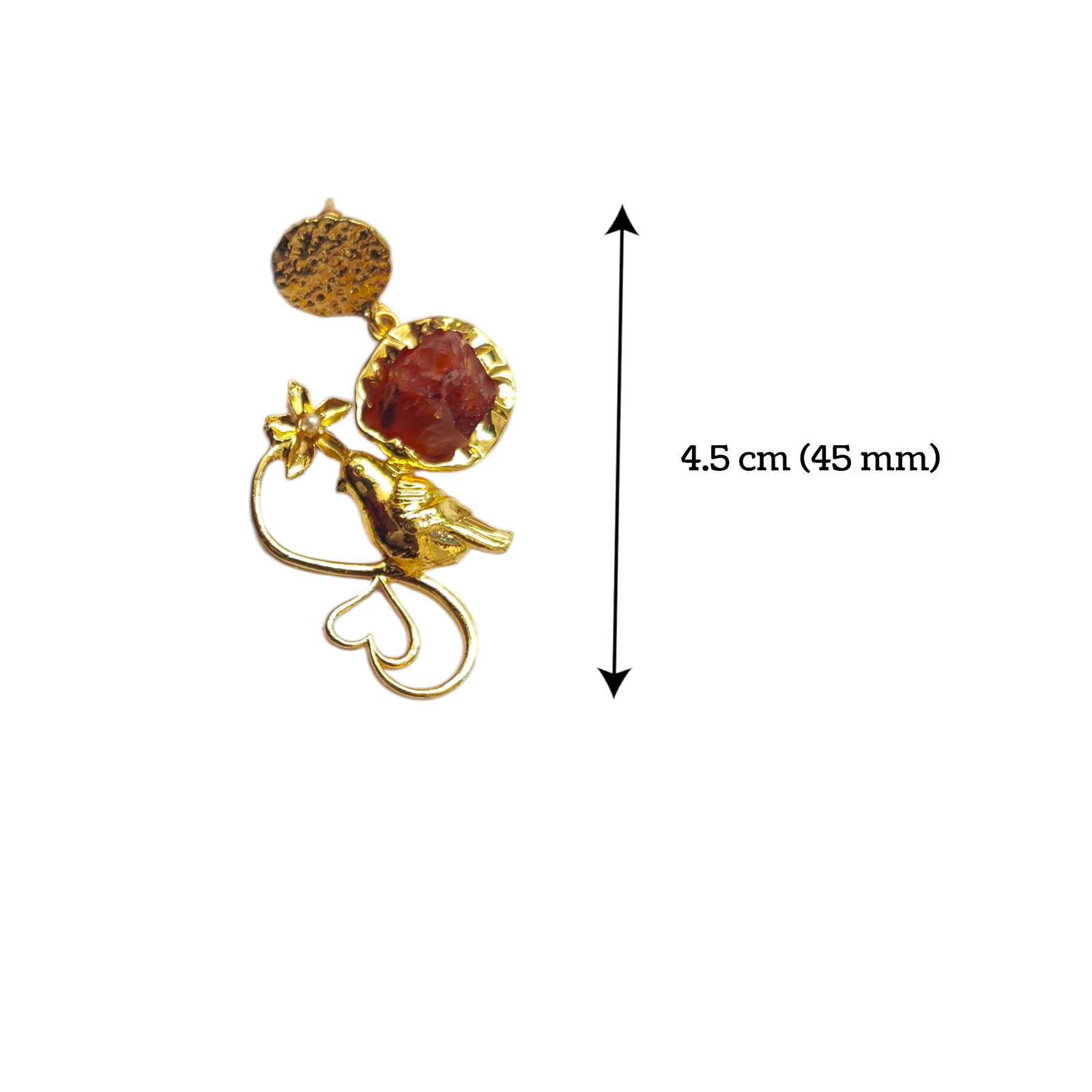 Let your style take flight with Birds in Bloom—an enchanting pair of handmade earrings that brings together the poetic essence of nature and the fiery energy of Carnelian stone.