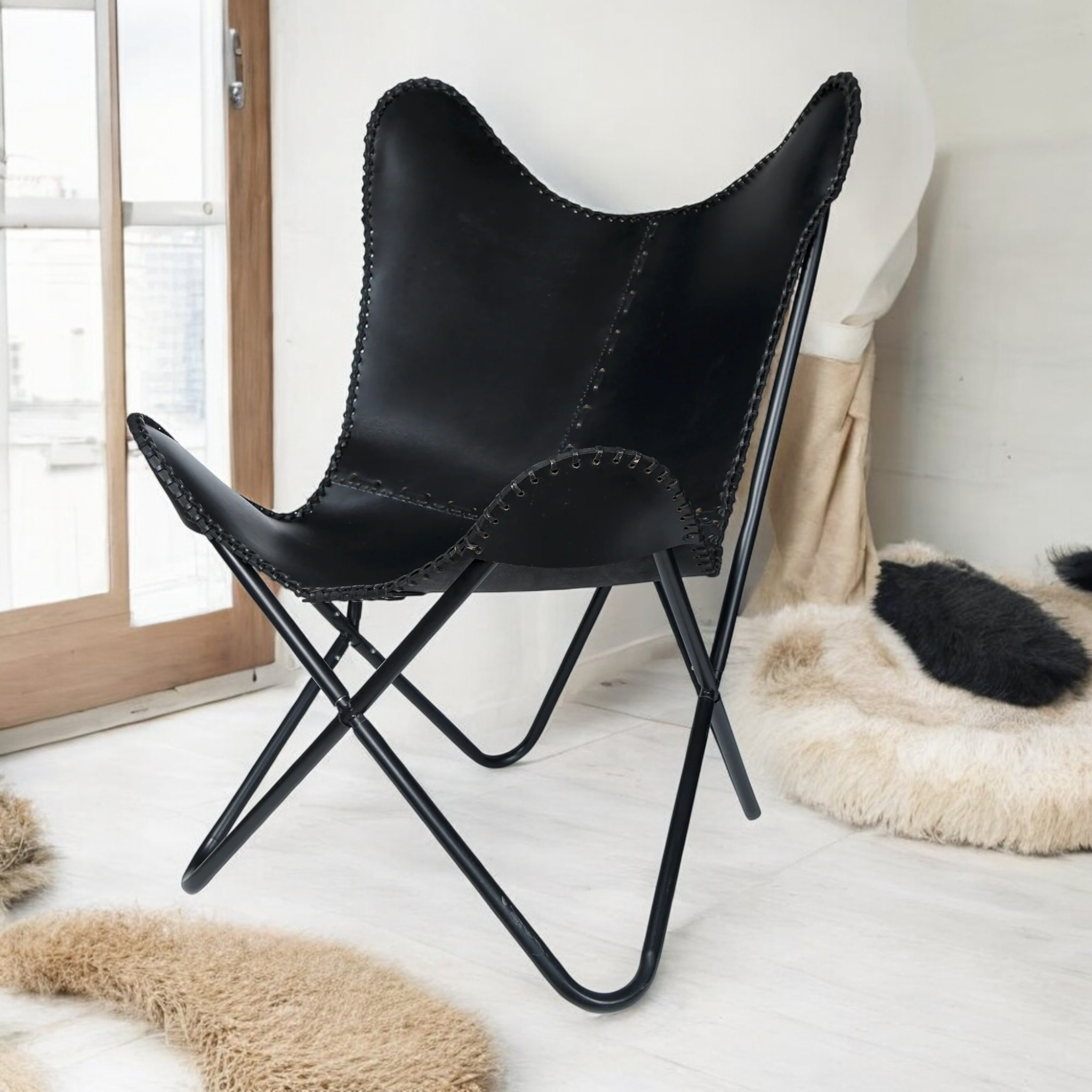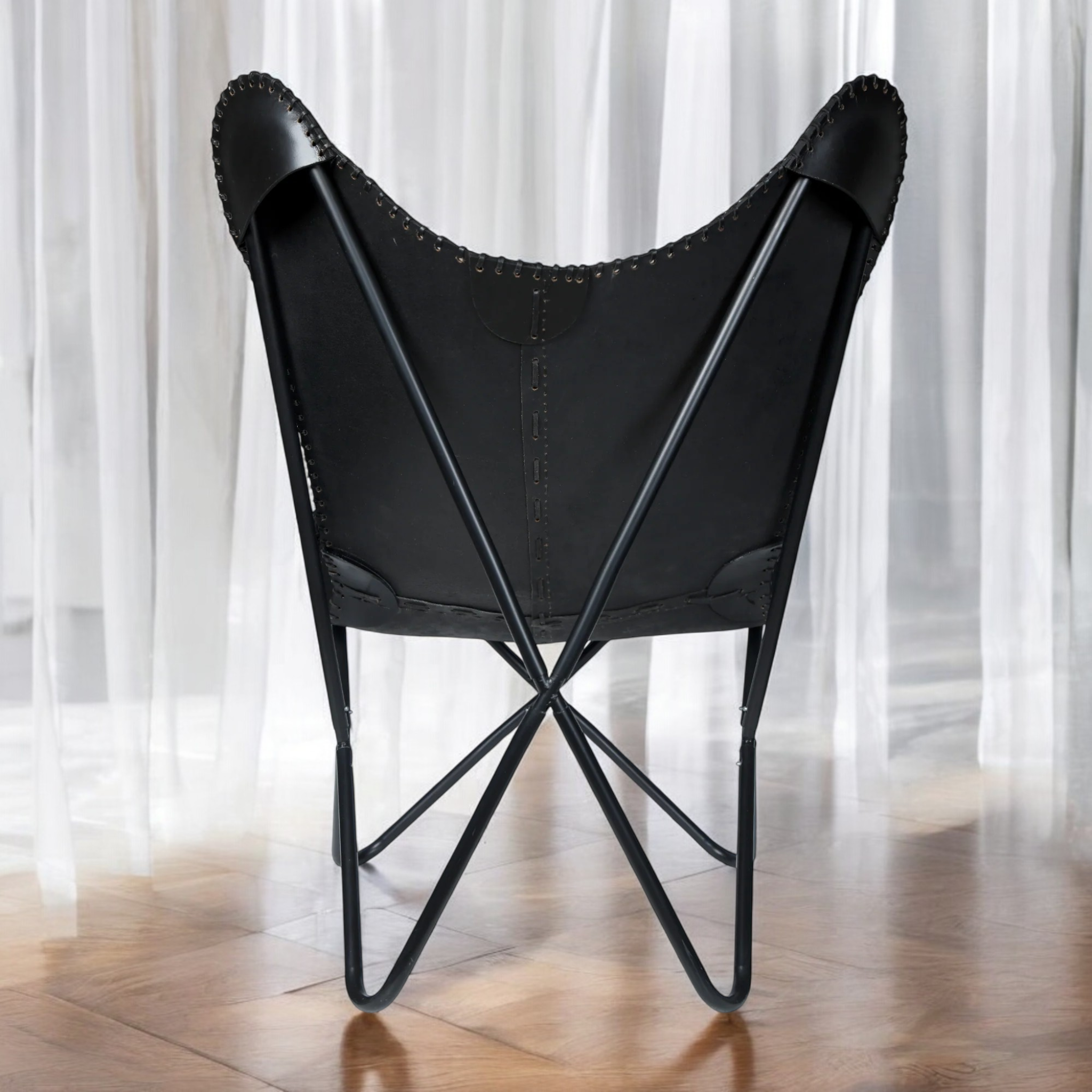 Sophisticated, bold, and effortlessly stylish—the Black Handmade Butterfly Leather Chair is a masterpiece of craftsmanship that brings rustic charm and modern luxury together in perfect harmony. Whether you’re looking to add a statement piece to your living space, reading nook, or office, this chair offers an inviting blend of comfort and high-end design.