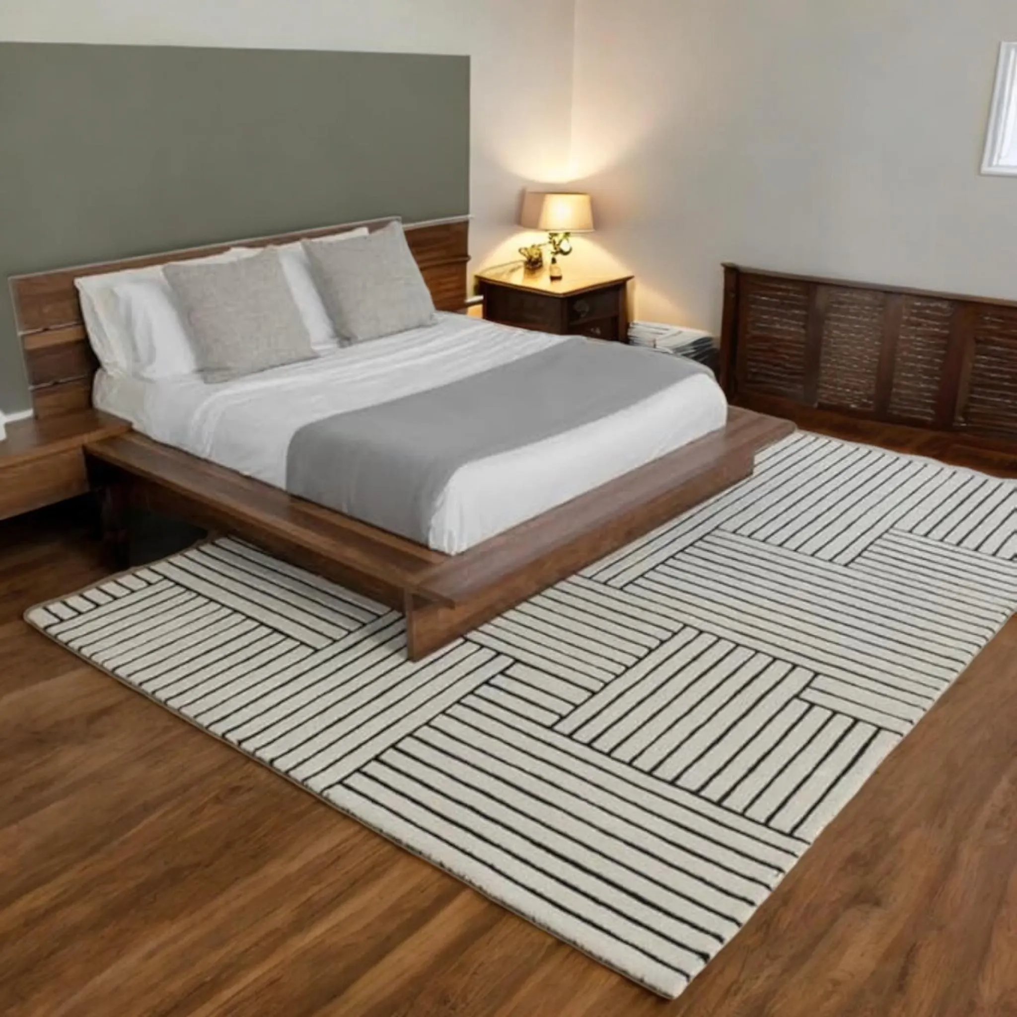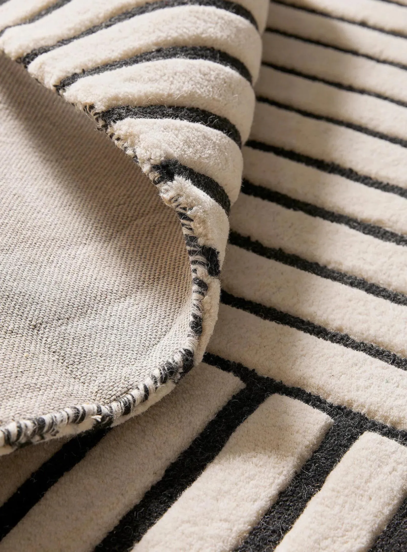Bring effortless elegance into your home with this beautifully handcrafted wool rug, made from 100% premium New Zealand wool for an ultra-soft, luxurious feel. Expertly hand-tufted in India, the rug features a sleek black striped pattern that exudes sophistication while offering cozy warmth and texture underfoot.