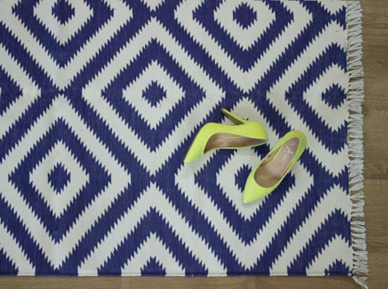 Blue & White Diamond Pattern Cotton Rug