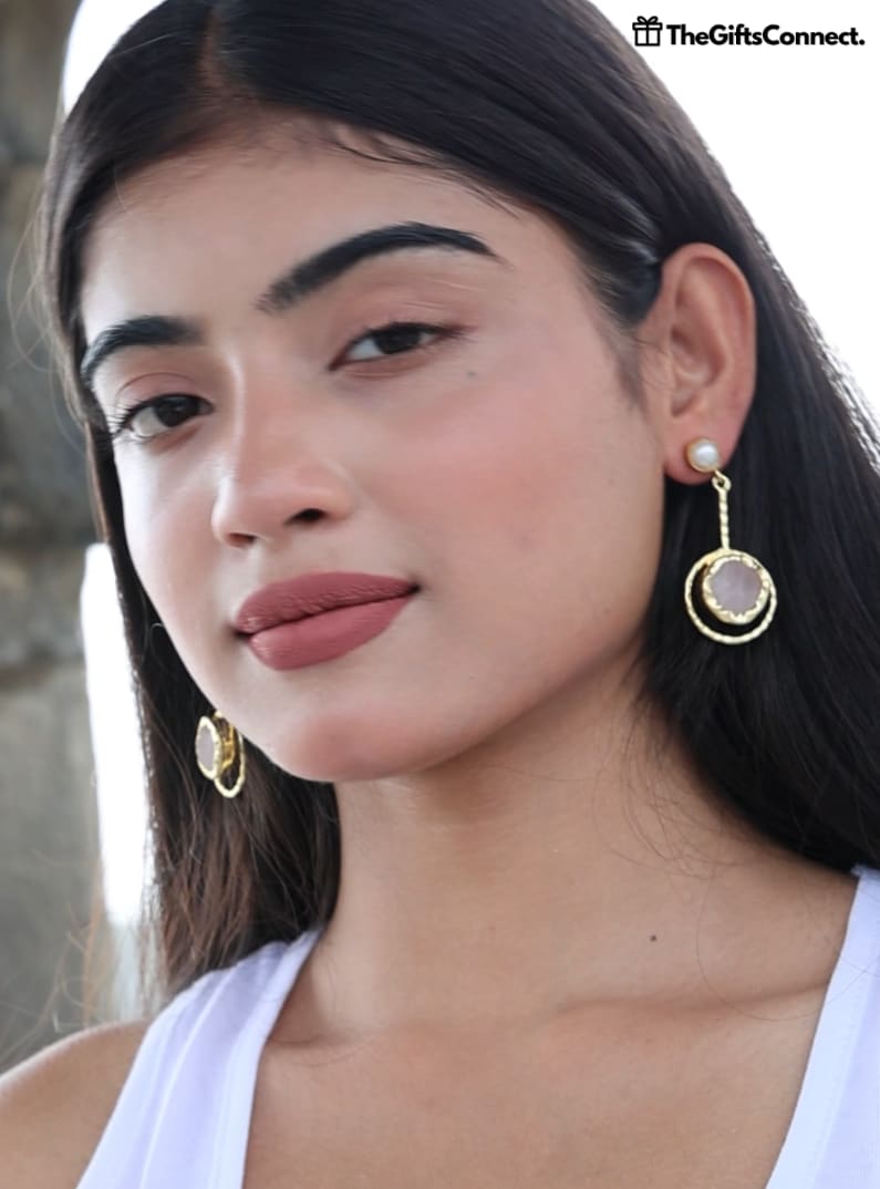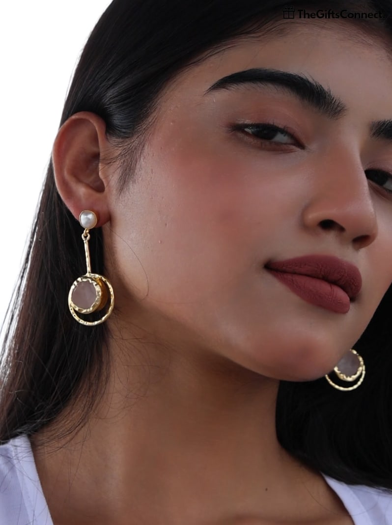 These are your go-to earrings for when you want to feel soft but grounded, elegant but easy. Pair them with: Flowy floral dresses or satin tops for date nights . Cozy knits and denim for that dreamy everyday look . Minimalist neutrals to let their blush tone pop.