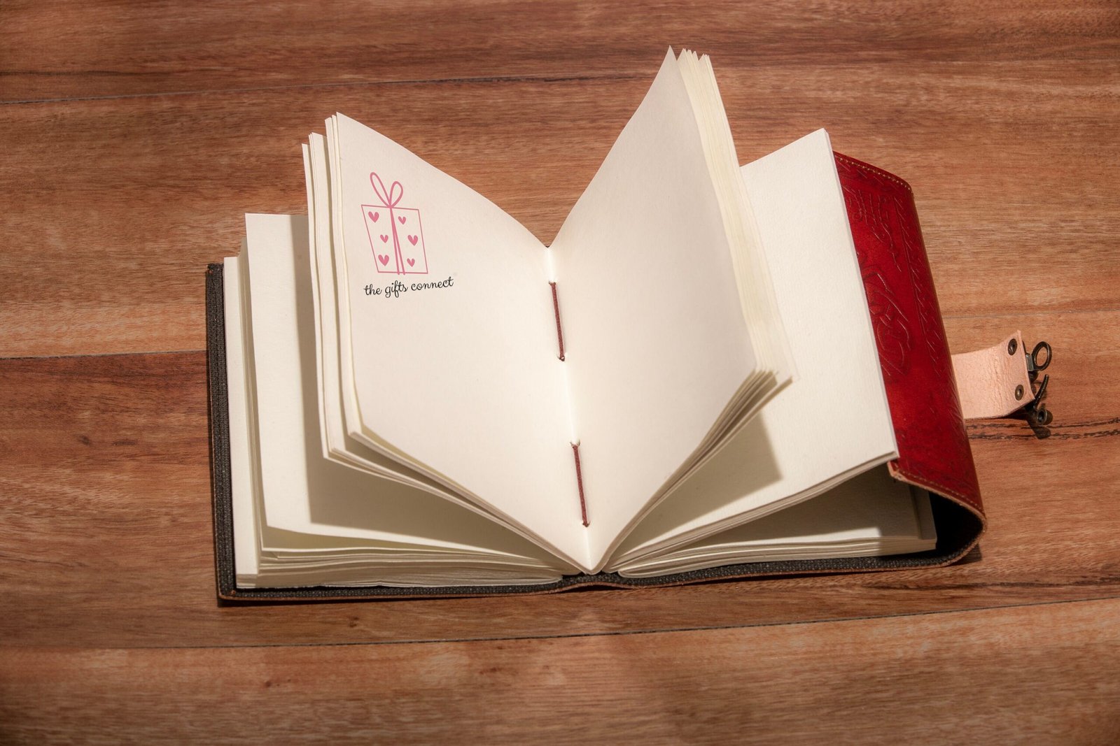 Meticulously designed and handmade from premium split leather, this journal features artful hand stitching, ensuring durability and a luxurious finish.