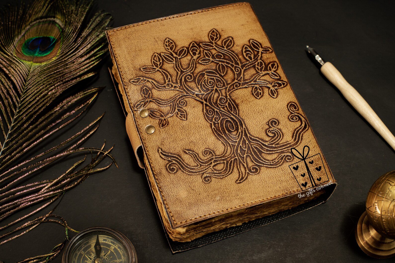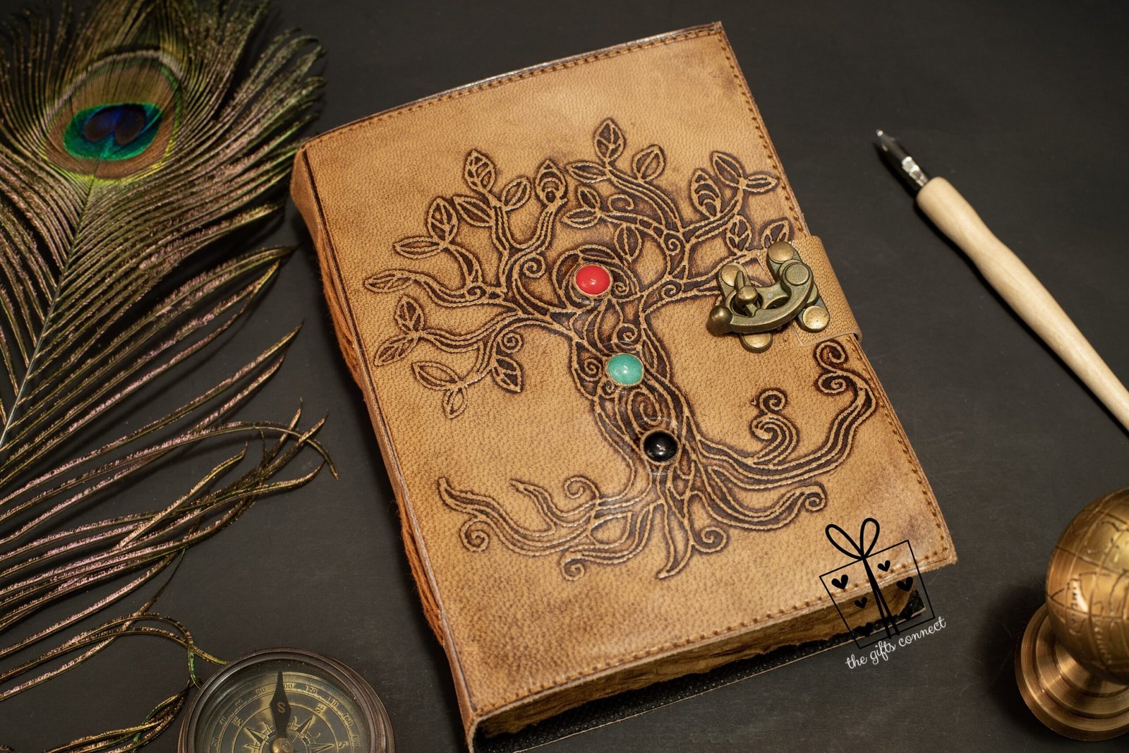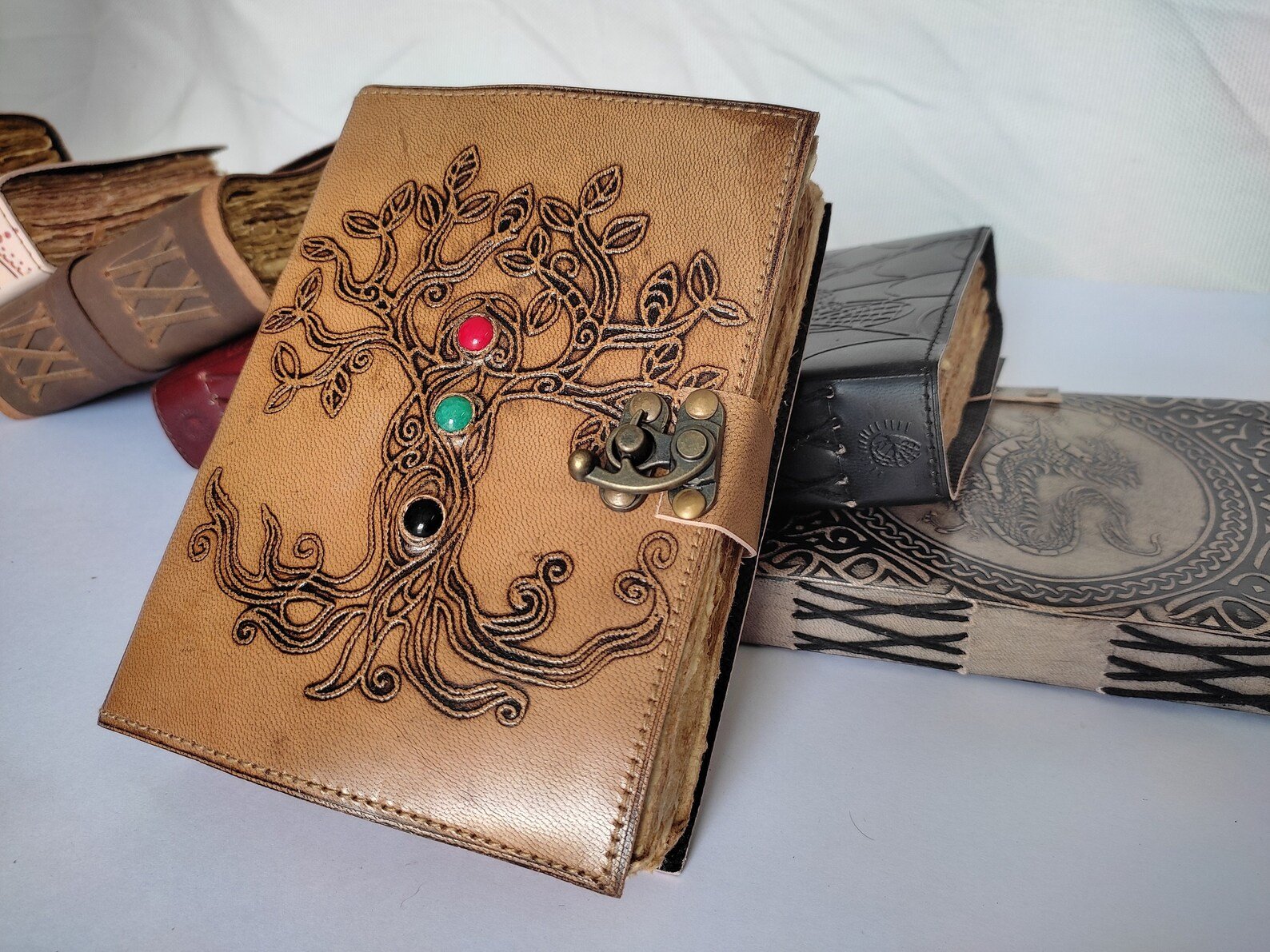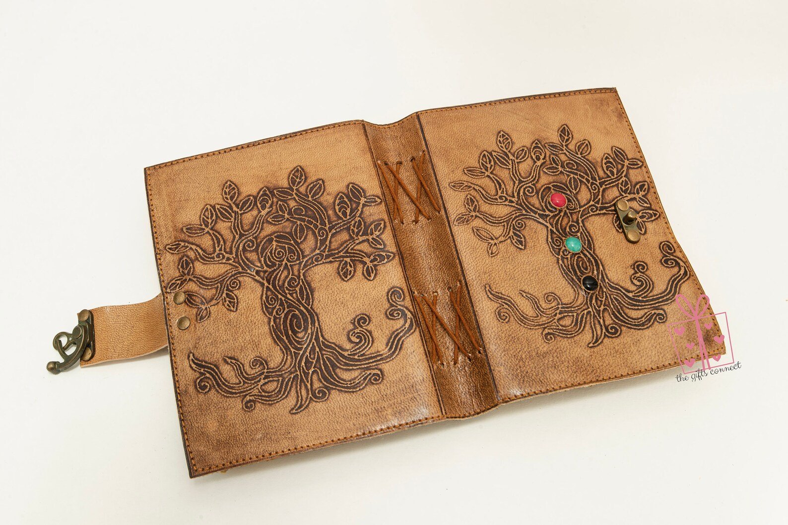 Unleash your creativity and capture your thoughts in this exquisite handmade leather journal, designed for dreamers, writers, and artists alike. Embellished with a stone centerpiece and an intricately embossed Tree of Life, this refillable sketchbook is a timeless keepsake that grows with your journey.