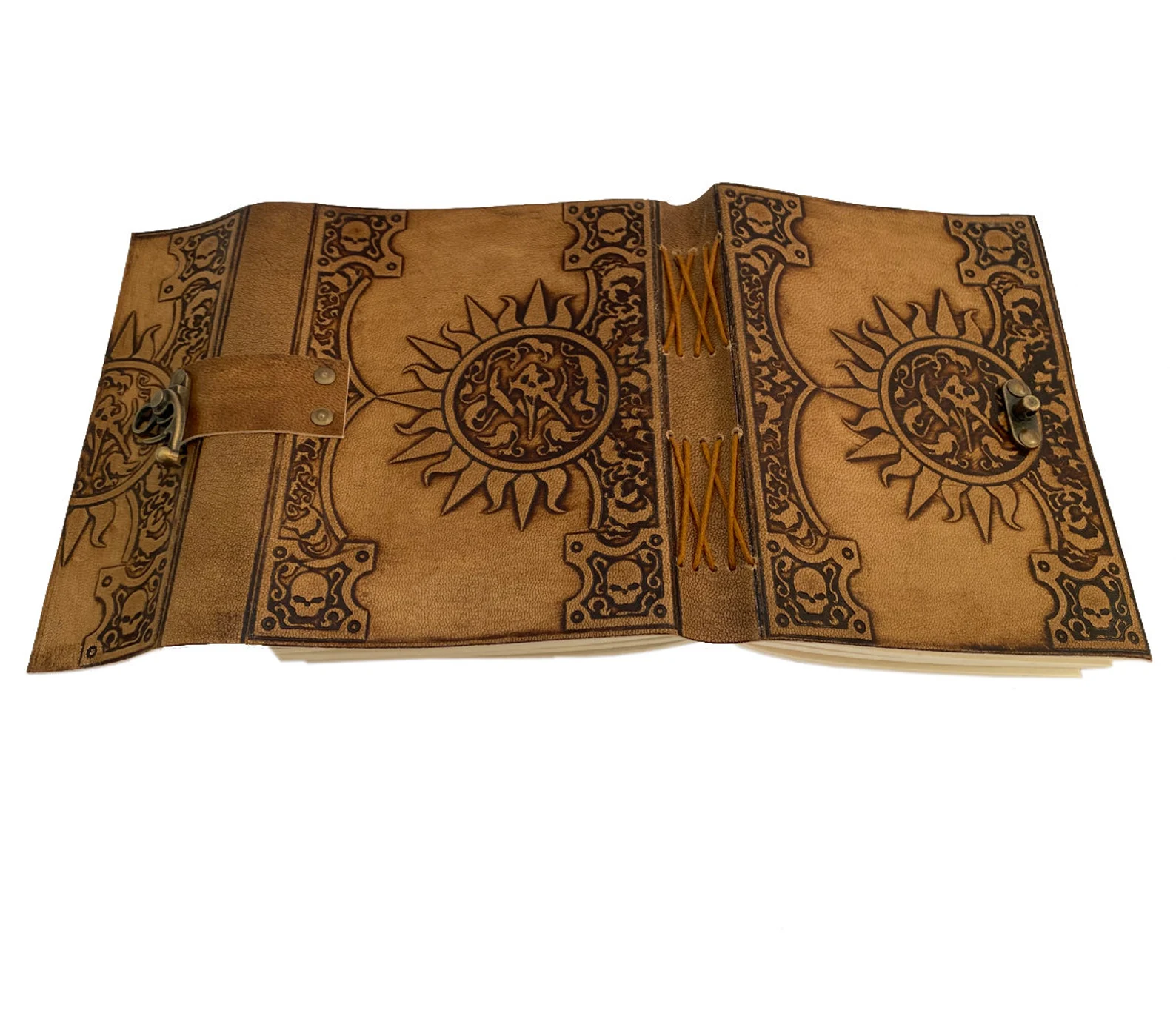 The Door of The Sun Leather Journal is more than just a notebook – it’s a piece of art, a keepsake, and a portal to your creativity. Whether you’re capturing dreams, sketching celestial designs, or penning your thoughts, this journal is a timeless treasure for anyone who values beauty, craftsmanship, and self-expression.