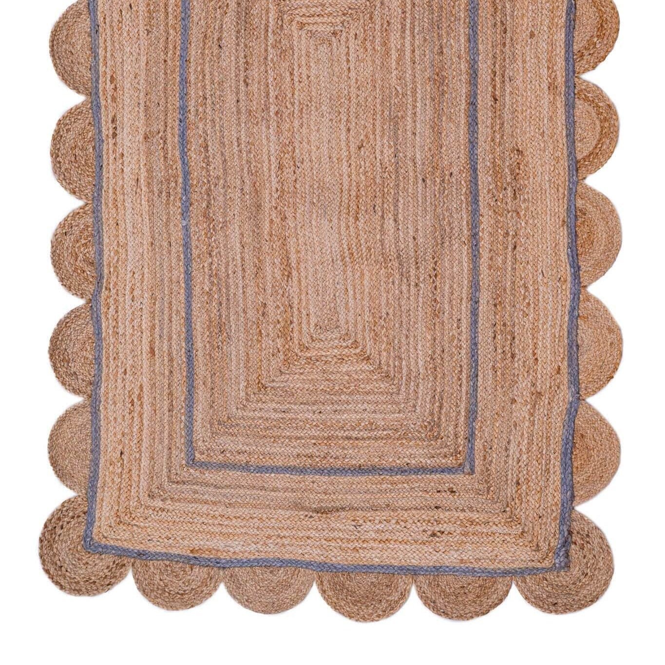 Dusty Blue Natural Jute Scalloped Rug