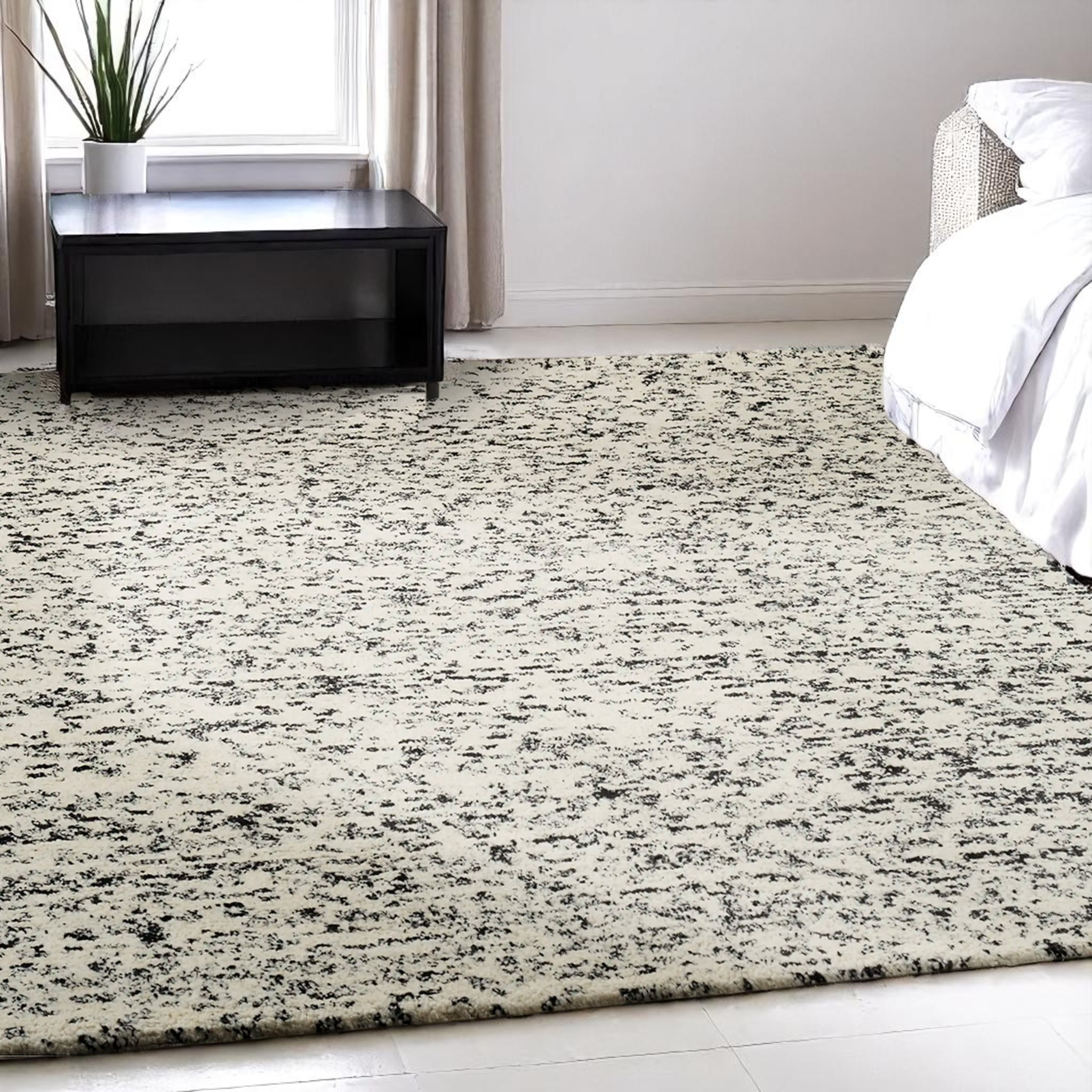 Hand Knotted Textured Wool Rug | Oriental Rug | Beige & Black Abstract High Pile Area Rug
