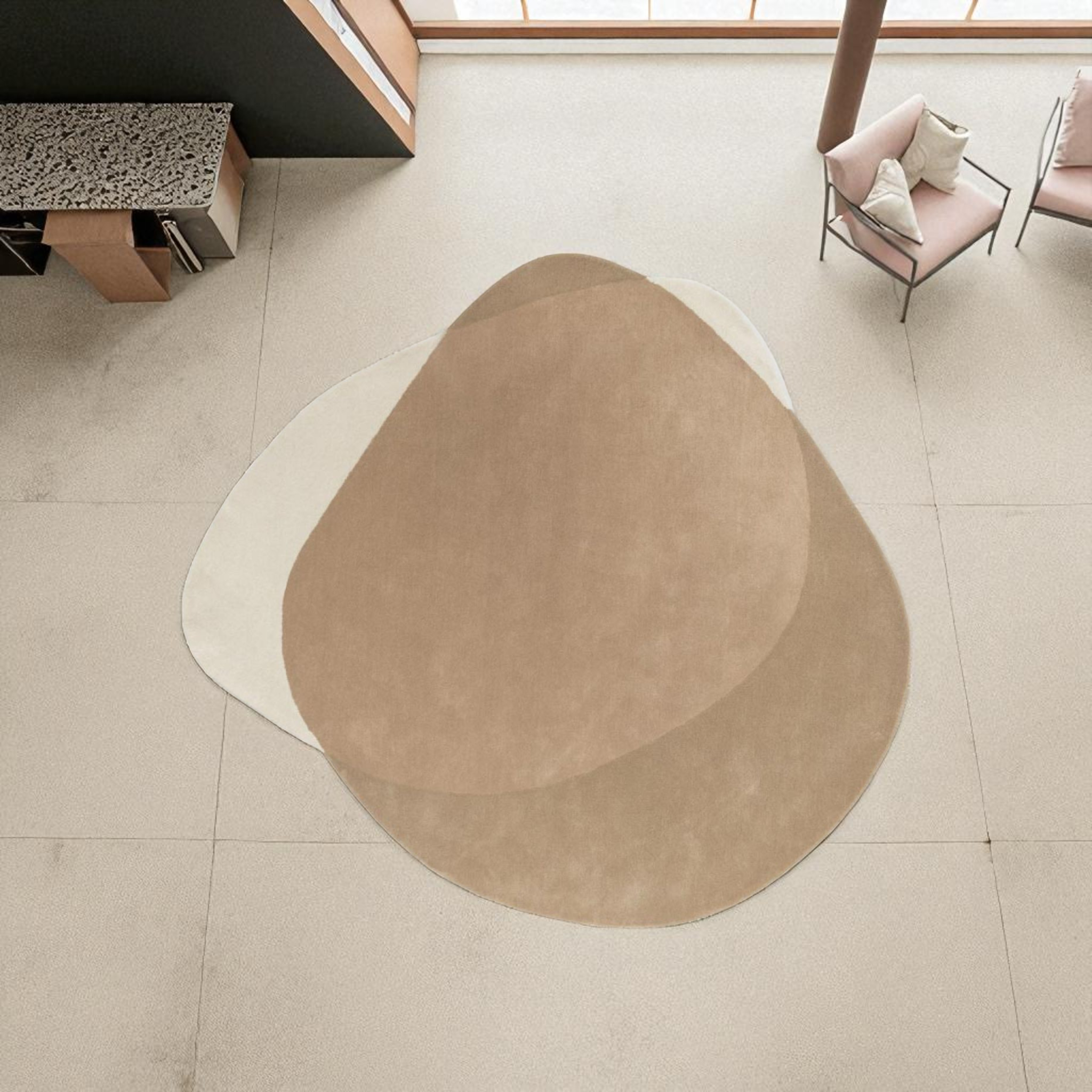Elevate your space with the serene beauty of our Hand Tufted Irregular Shape Abstract Layered Wool Rug, crafted from 100% premium New Zealand wool. Inspired by the gentle flow of natural landscapes and earthy tones, this rug features a pebble-like layered design in soothing shades of beige, tan, and off-white — a perfect harmony of form and function.