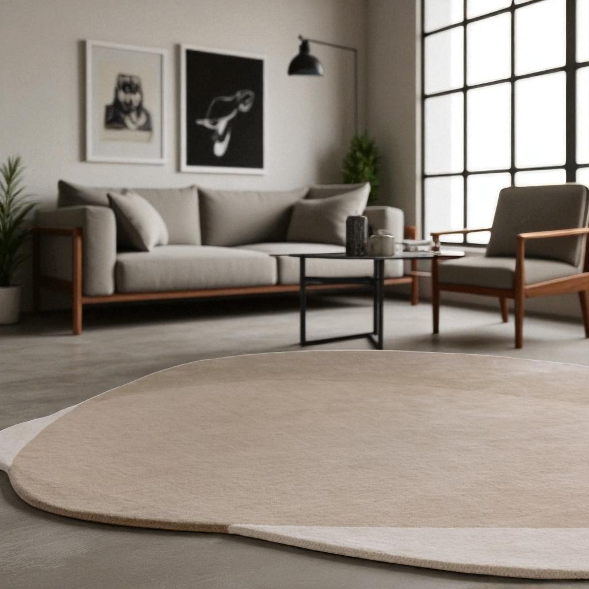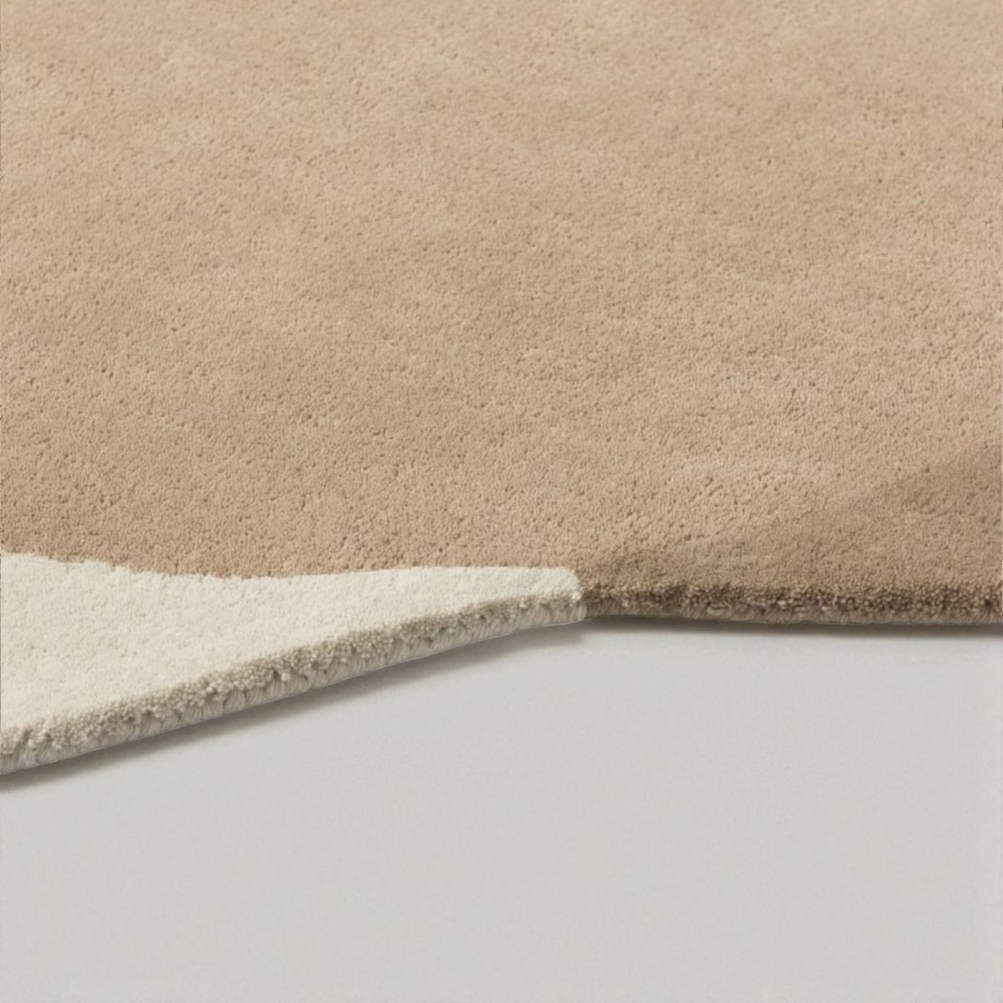 Each rug is hand-tufted by skilled artisans in India, ensuring a luxuriously soft, plush texture and exceptional craftsmanship. The irregular organic shape and minimalist palette make it a striking addition to any interior — from Scandinavian and Japandi aesthetics to modern and contemporary decor.