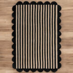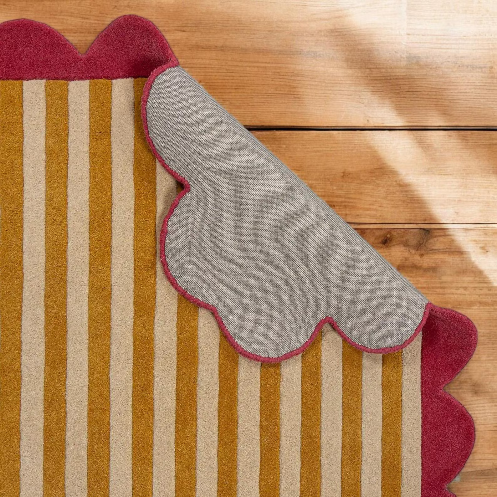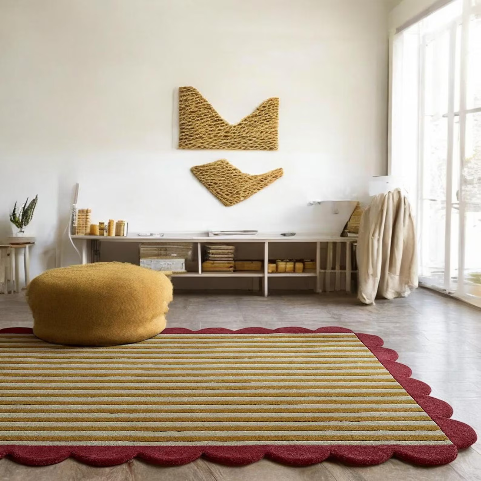 Hand Tufted Scalloped Edge Wool Rug, Scallop Striped Modern Area Rug, Living Room Decor Soft Wool Carpet, Custom Rug