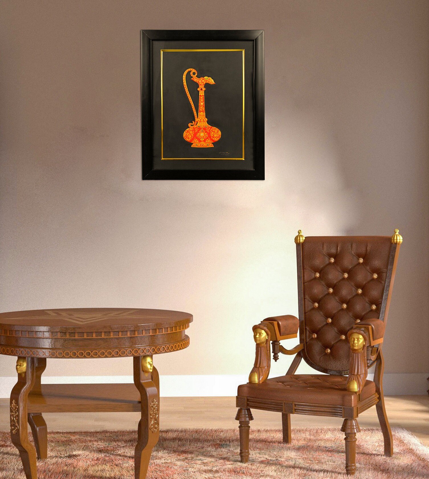 Handmade Painting of Royal Mughal Surahi Jug,Vintage Painting With Mineral Color And Semi Precious Stones for Wall Decor By thegiftsconnect