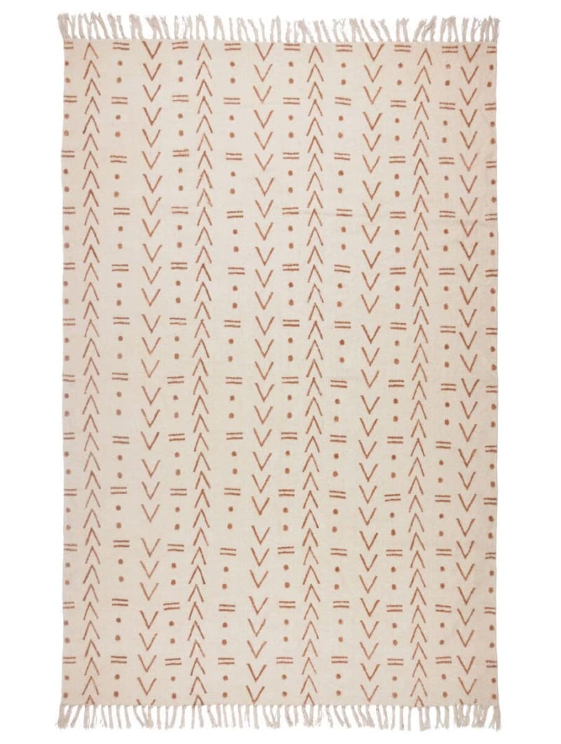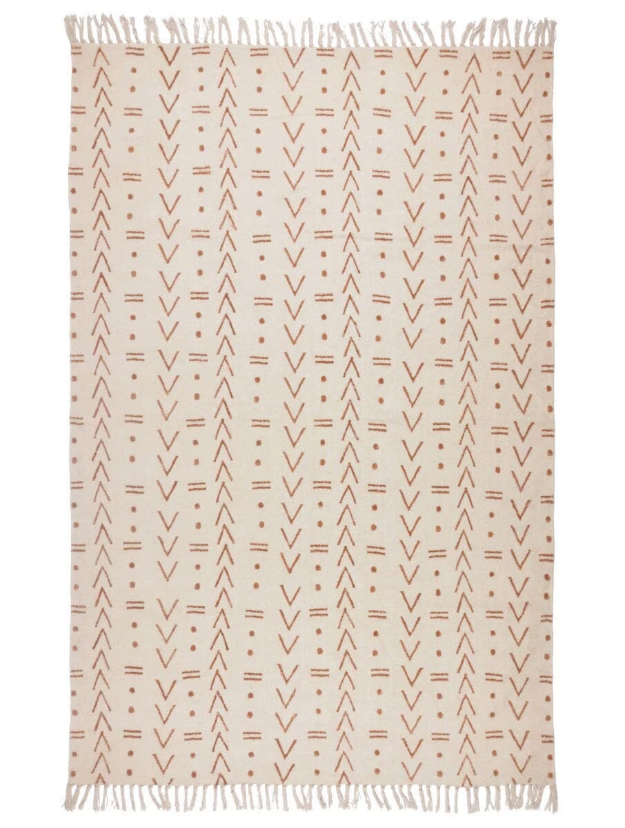 • 🎨 Tribal-Inspired Pattern – Hand-printed chevron & dotted design in terracotta tones
