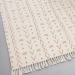 Woven from 100% natural cotton, each piece is handcrafted by skilled artisans, ensuring every rug tells its own unique story. The soft cream background provides a calming canvas, while the rhythmic, earthy patterns create a serene, grounded vibe — ideal for modern, bohemian, or Scandinavian interiors.