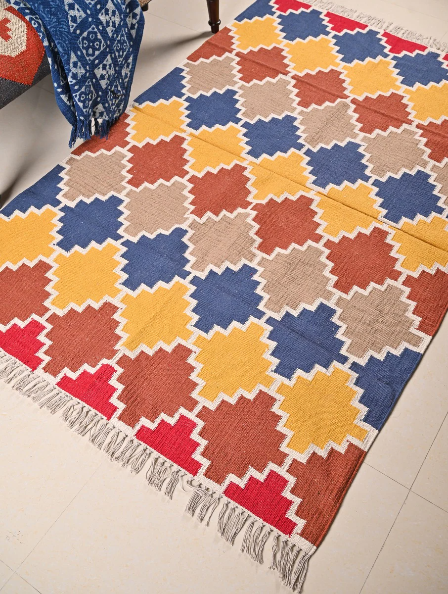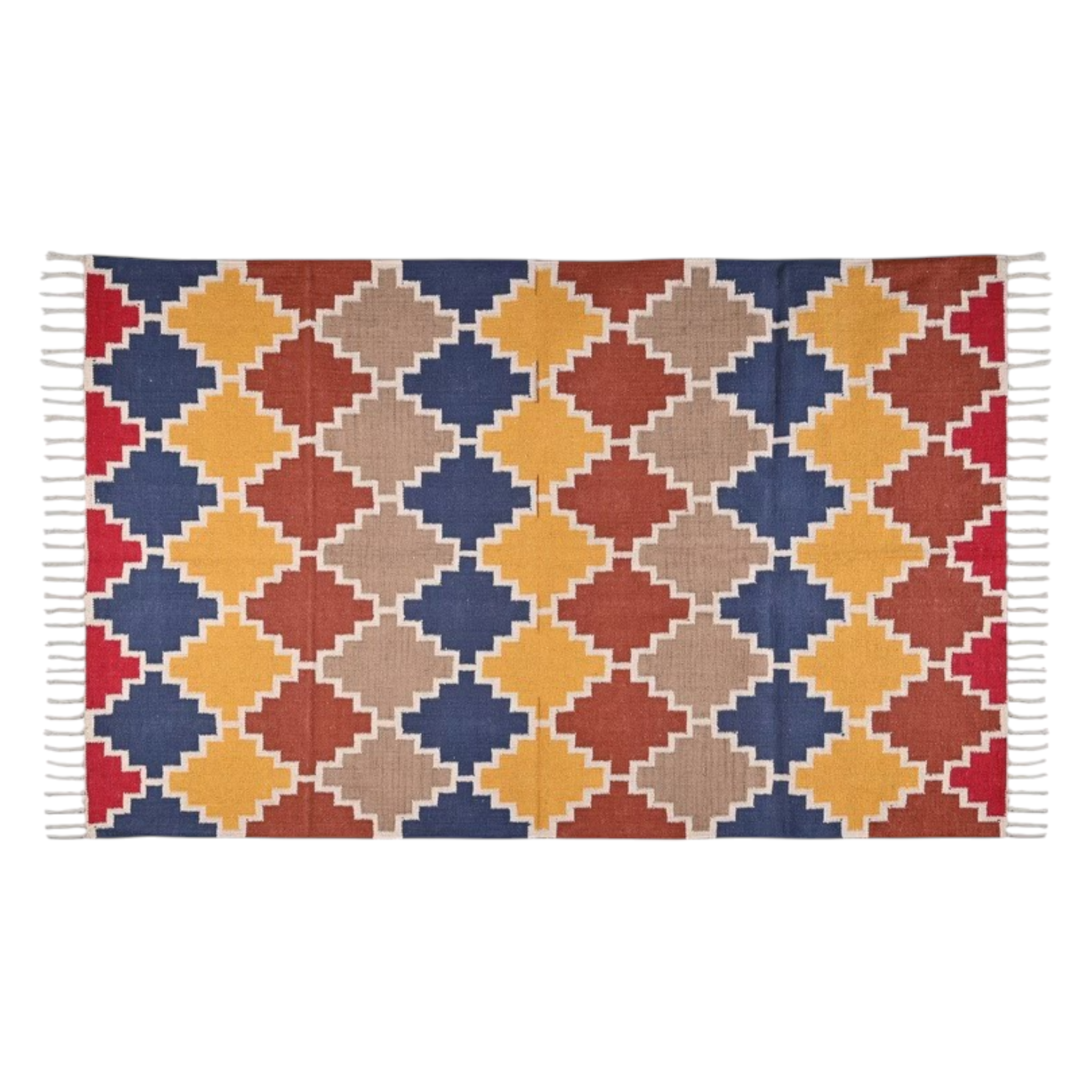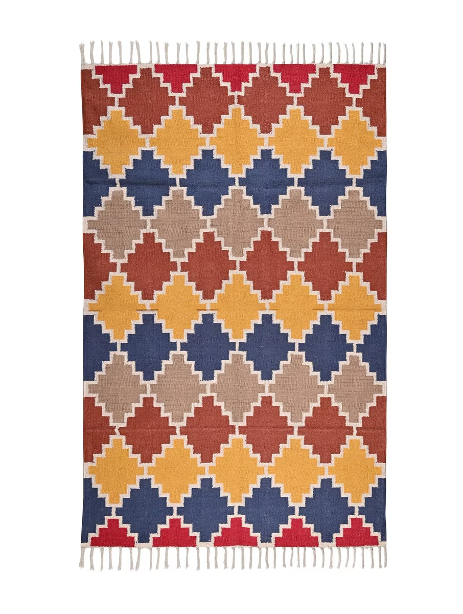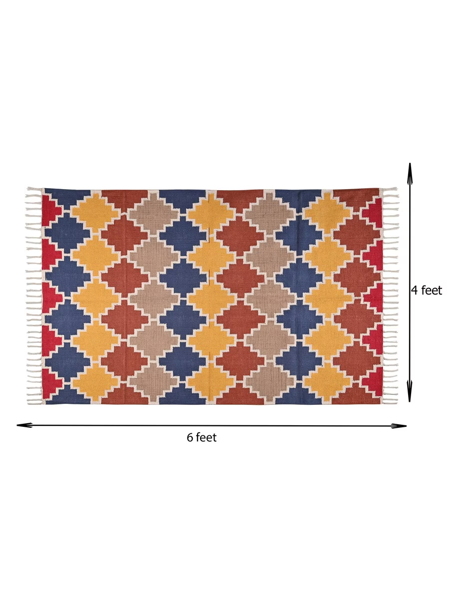 Handwoven Kilim Geometric Flatweave Rug | Multi-Color Diamond Pattern Cotton Area Rug