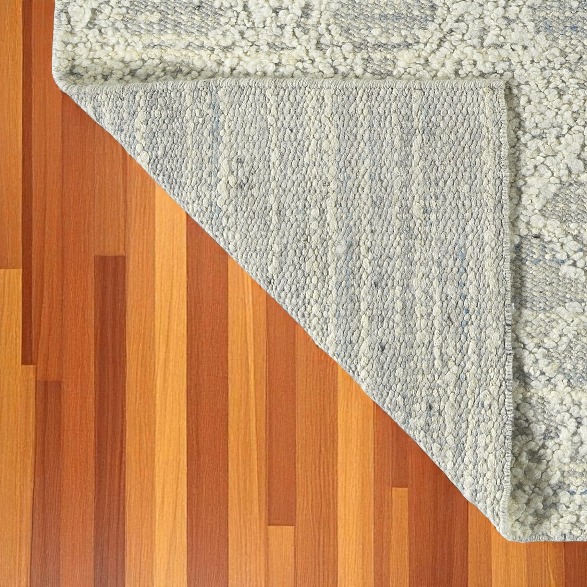 Handwoven Textured Wool Area Rug, Abstract Ivory & Gray Carpet, Mid Century Rug, Soft Boho Rug