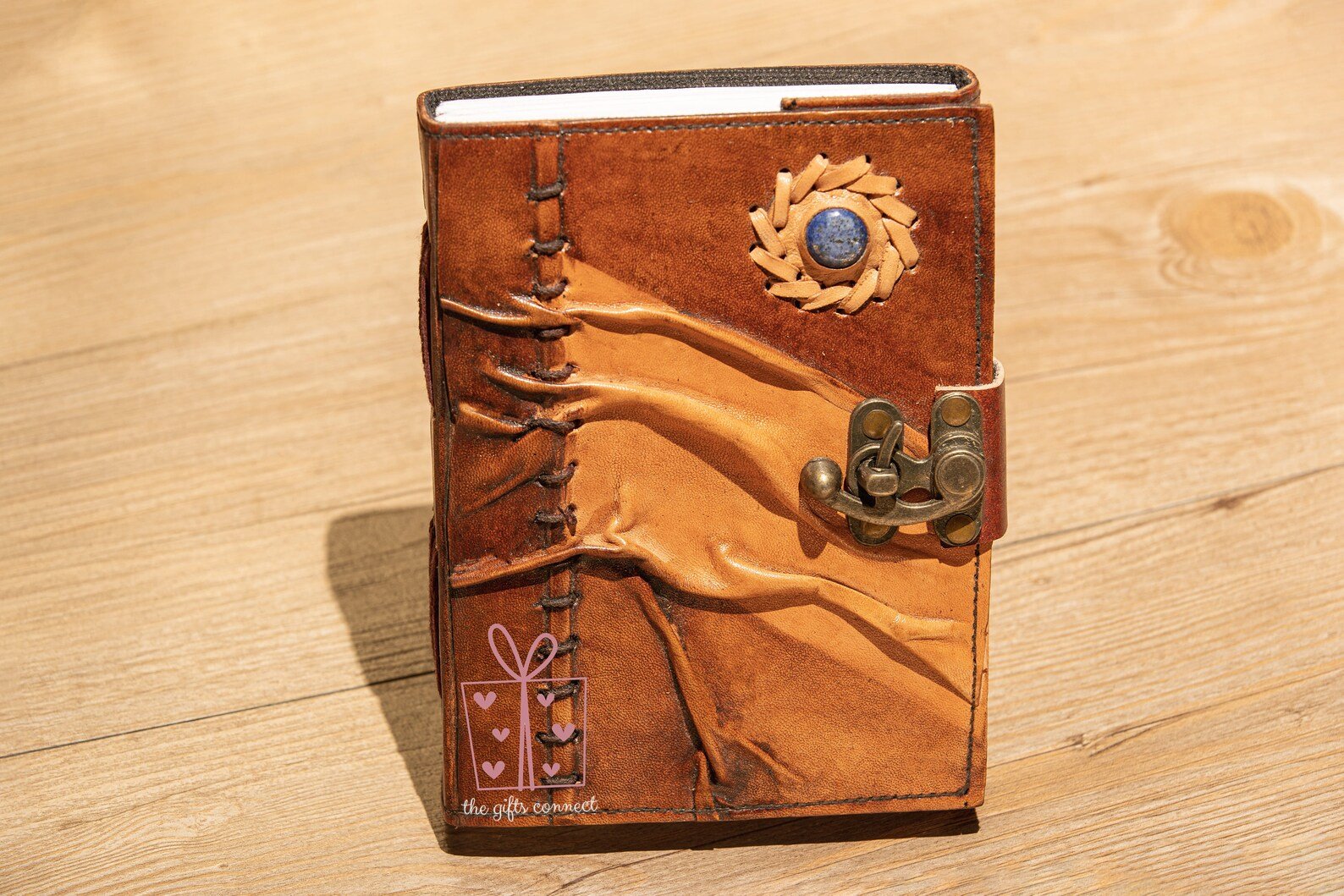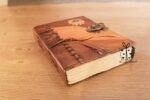 Embrace the magic of creativity with this Handmade Hocus Pocus Leather Journal, adorned with a mystical Lapis Lazuli stone. Designed for writers, artists, and free spirits, this travel-sized diary easily fits in your handbag, laptop bag, or travel case, making it a perfect companion wherever inspiration strikes. The antique brass C-clasp lock keeps your deepest thoughts, sketches, and spells secure.