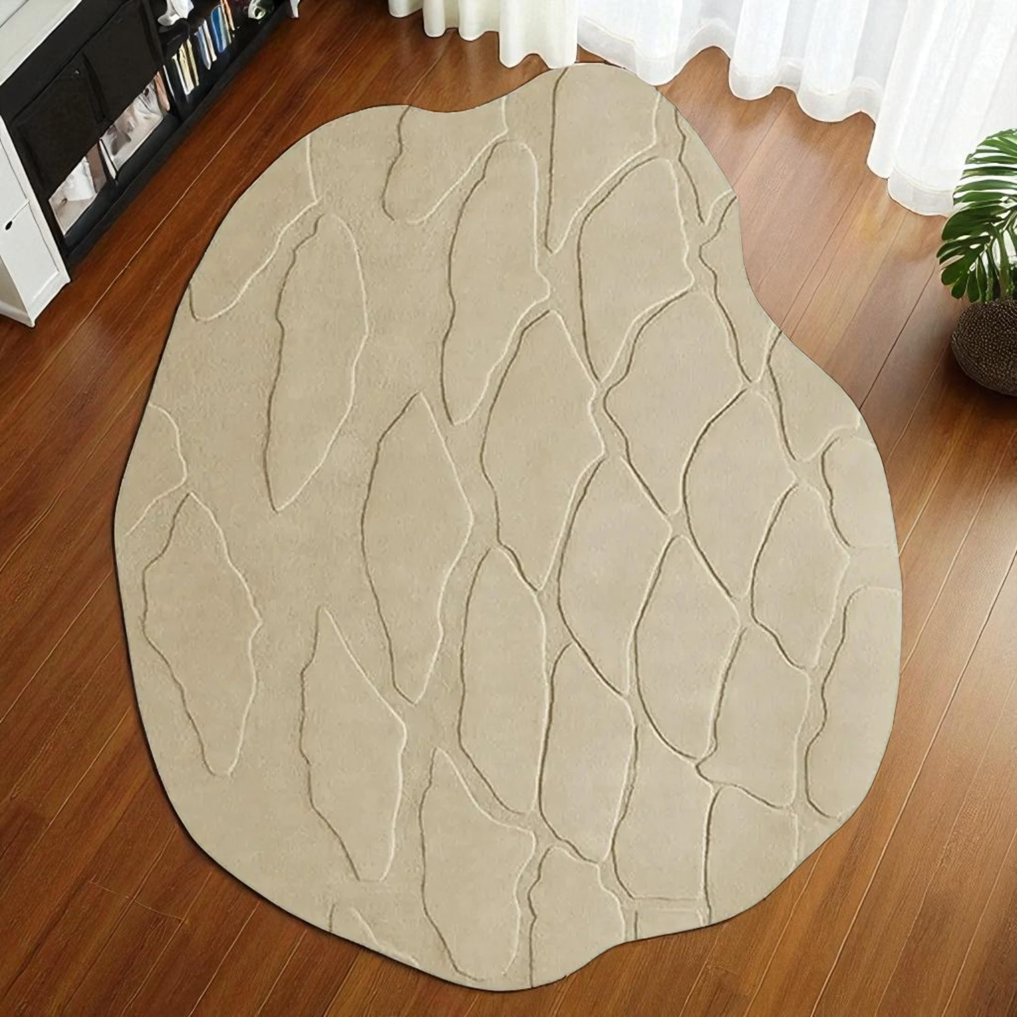 Bring a touch of modern artistry into your home with our Irregular Shape Hand Tufted Wool Rug – a sculptural, organic masterpiece designed to break away from tradition. With its bold yet calming silhouette, this rug serves as both floor décor and functional art, instantly elevating your interiors with depth, warmth, and personality.