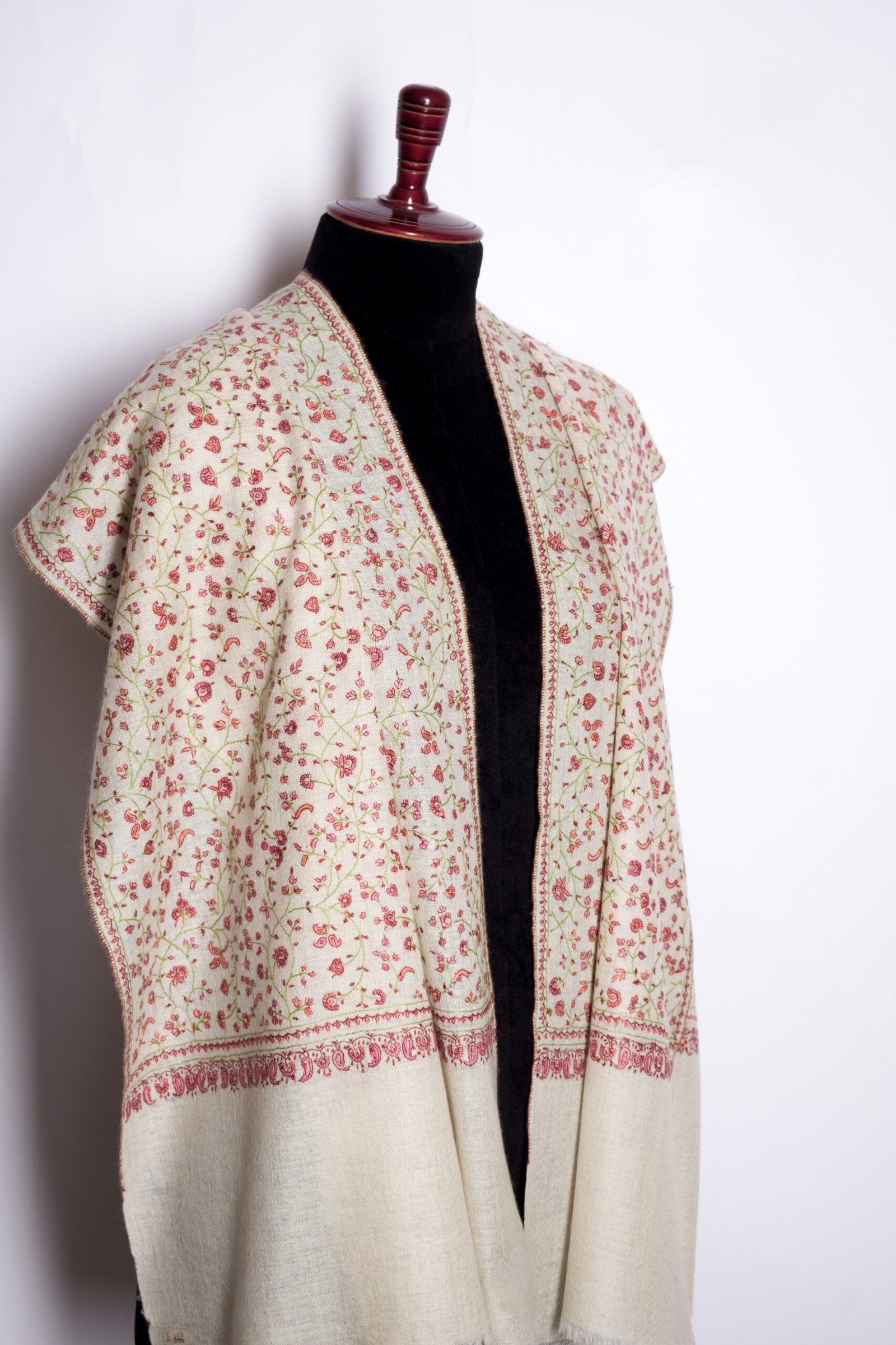 Minimalist Hand Embroidered Floral Cashmere Shawl | Pure Himalayan Cashmere Scarf | Natural Soft Pashmina Shawl by TheGiftsConnect