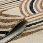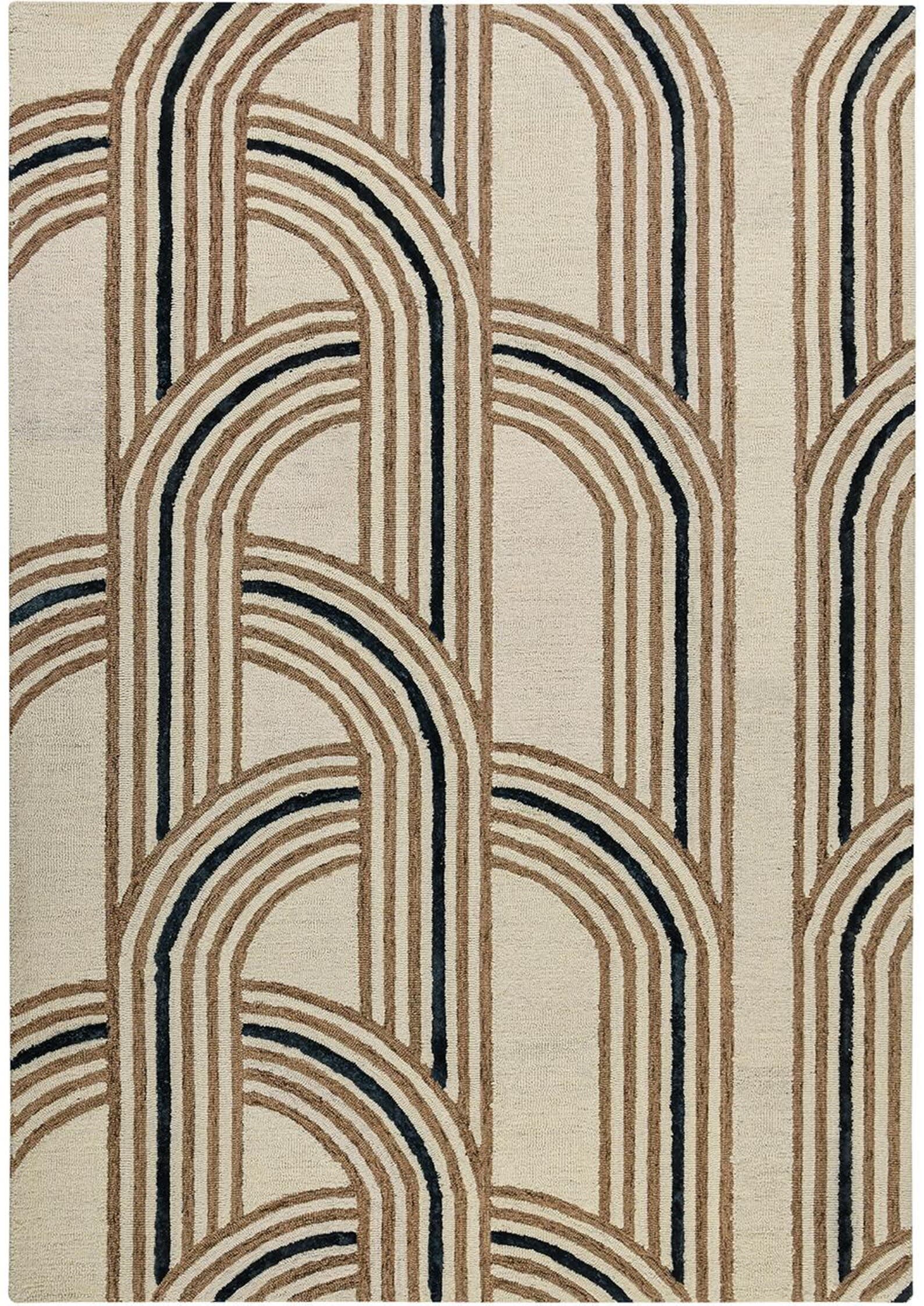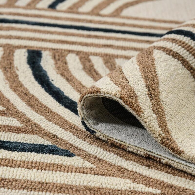 Modern Geometric Hand Tufted Wool Rug | Arched Striped Pattern Soft Living Room Carpet | Wool Area Carpet