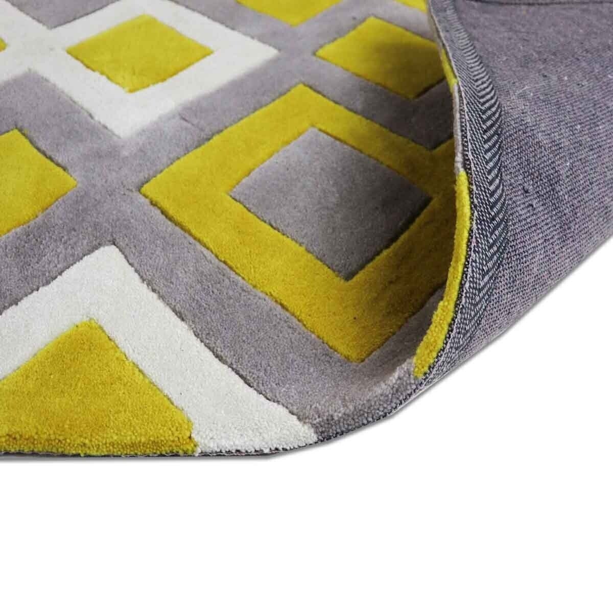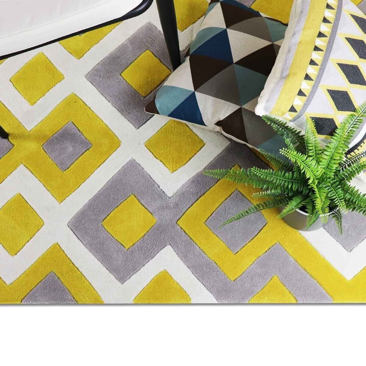 Expertly hand-tufted from 100% natural wool, this rug offers a plush and luxurious feel underfoot while ensuring durability for high-traffic areas. The modern geometric pattern, paired with a rich color palette of mustard, gray, and white, effortlessly complements both contemporary and classic interiors. Its thick pile and tufted construction create a cozy, inviting ambiance—making it a timeless investment in comfort and style.