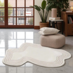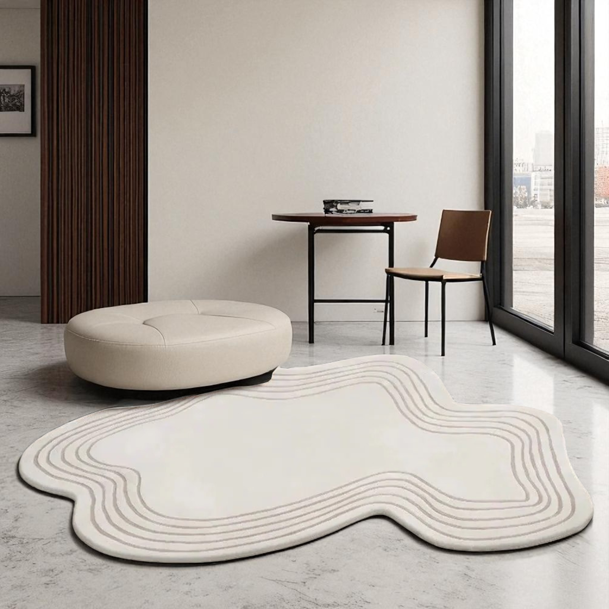 Modern Irregular Wave Edge Hand Tufted Wool Rug – Soft Cream Minimalist Area Carpet