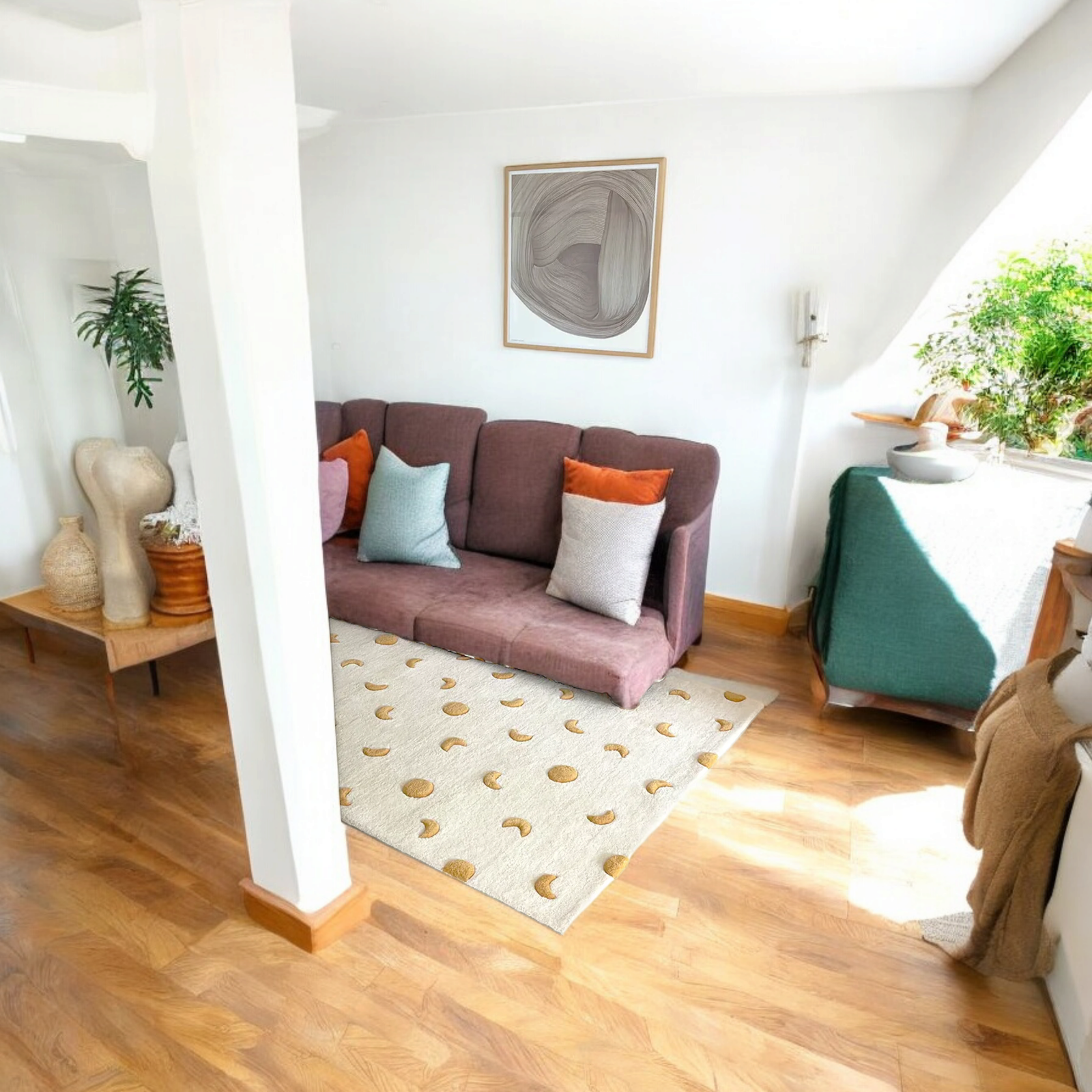 Let your little one’s imagination take flight with our Moons Hand-Tufted Wool Rug, a celestial-inspired masterpiece designed to bring warmth, comfort, and whimsy to any nursery, playroom, or bedroom. Made from 100% natural wool, this rug is both eco-friendly and ultra-soft, creating a cozy space for play, relaxation, and dream-filled nights.