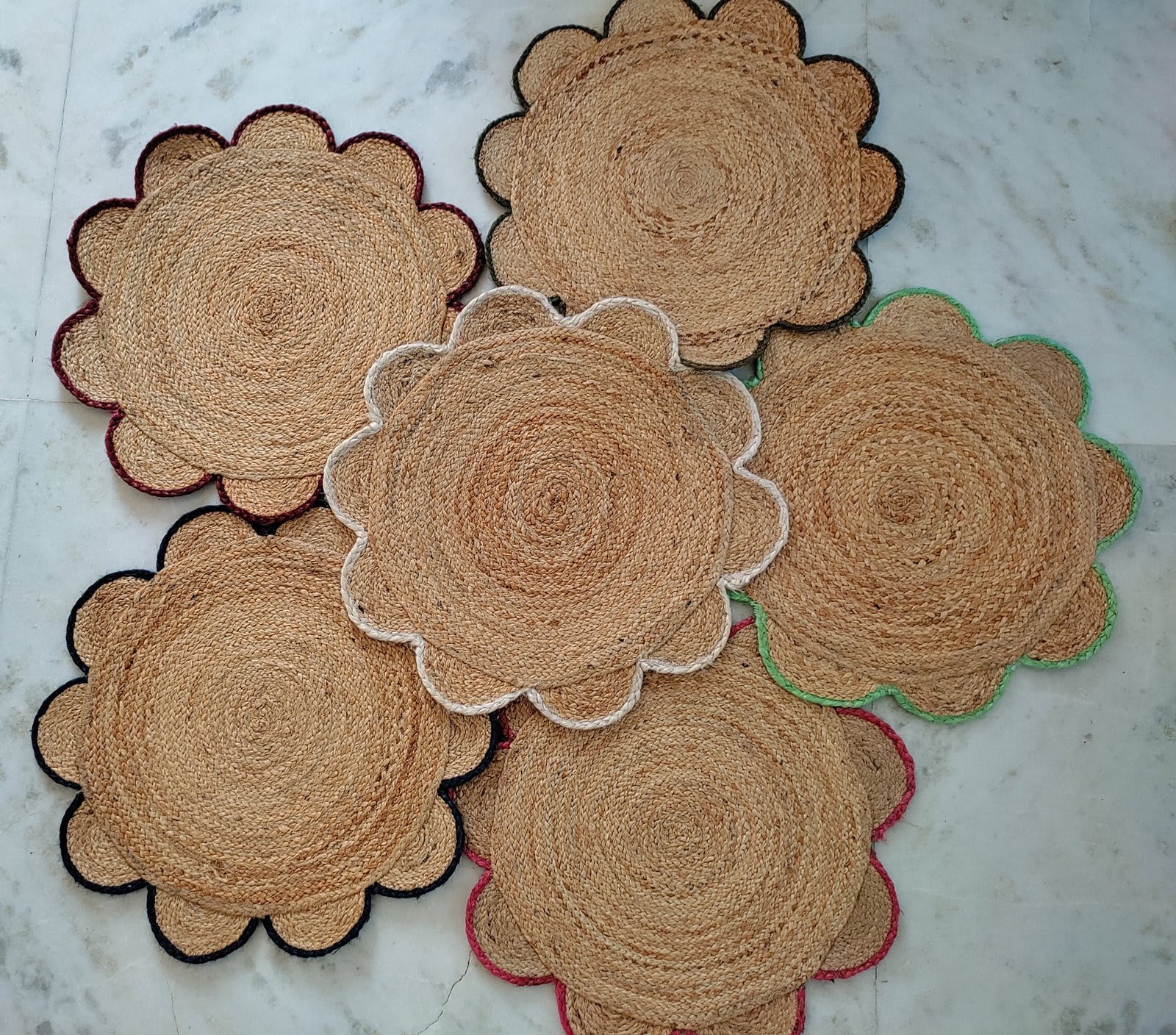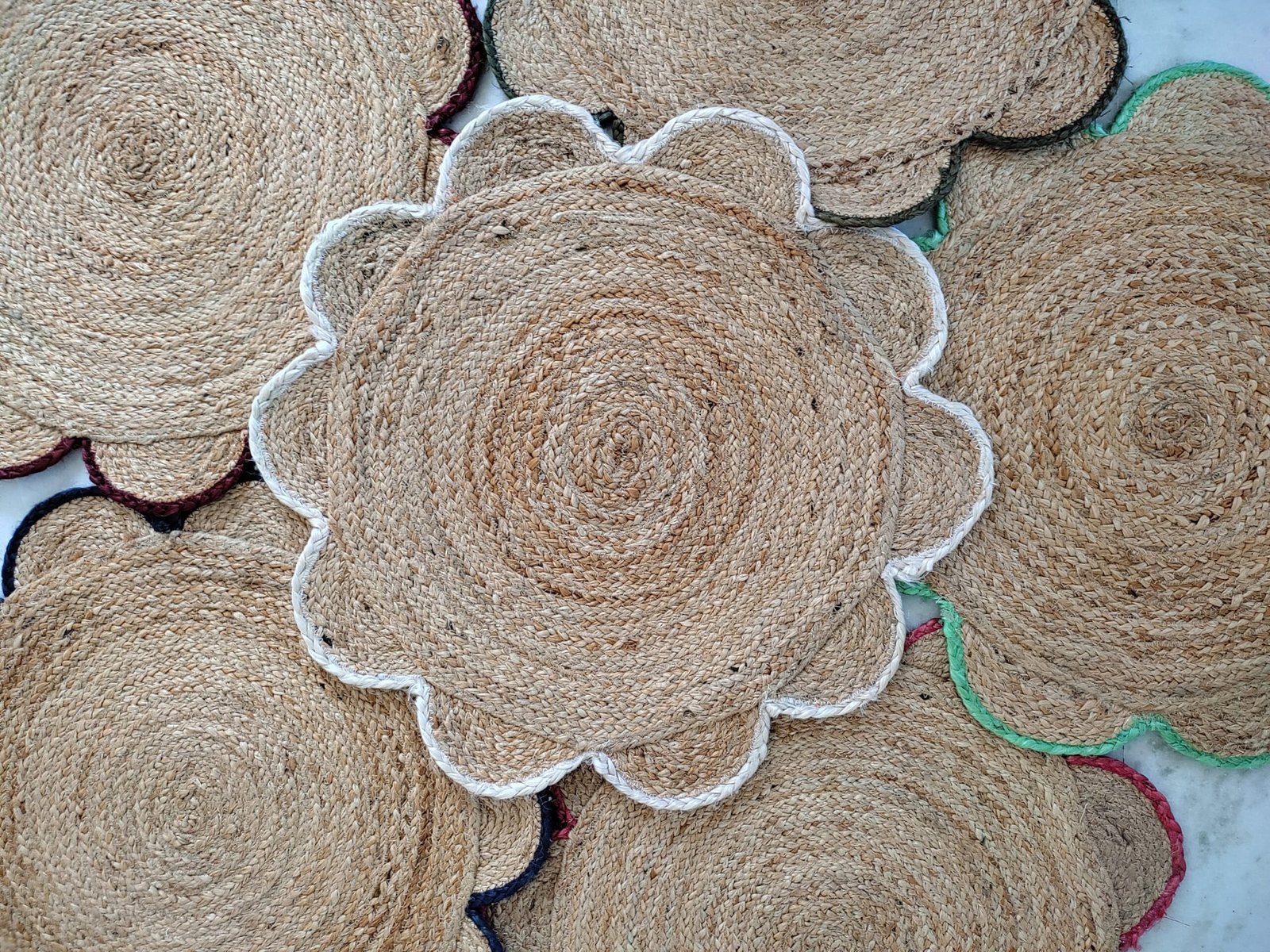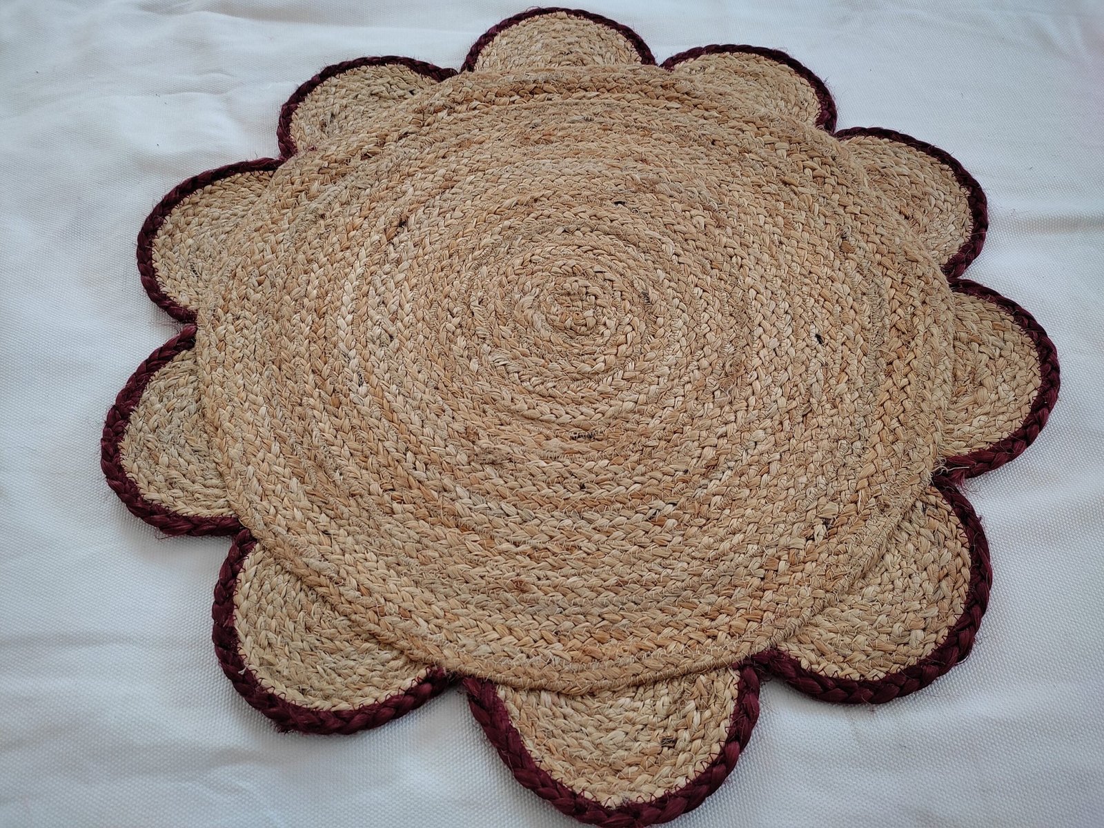 Elevate your space with the rustic charm of our Natural Scallop Round Handmade Jute Rug, a perfect blend of sustainability and timeless design. Handwoven from 100% natural jute fibers, this eco-friendly rug is available in custom sizes and edge colors, allowing you to create a piece that complements your home decor effortlessly.