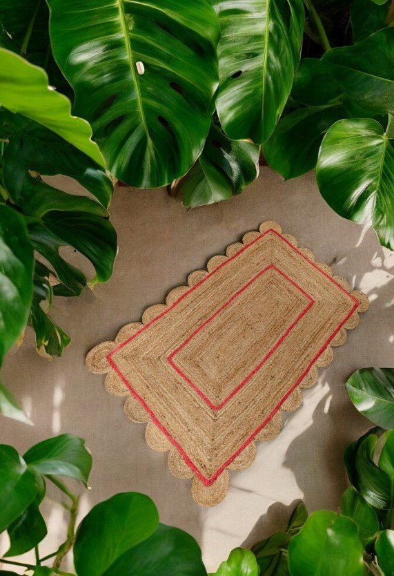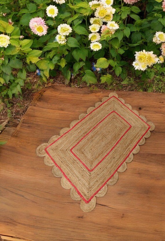 Red Natural Fiber Jute Scallop Rug Perfect for Bohemian Decor