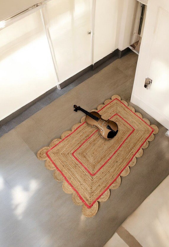 Elevate your home with the handcrafted charm of our Red Natural Fiber Jute Scallop Rug. Designed to blend effortlessly with Bohemian, Farmhouse, or Coastal decor, this rug is a statement of style, sustainability, and warmth. Whether you’re decorating your hallway, living room, or bedroom, its scalloped edges and braided texture add a touch of elegance and playfulness to any space.