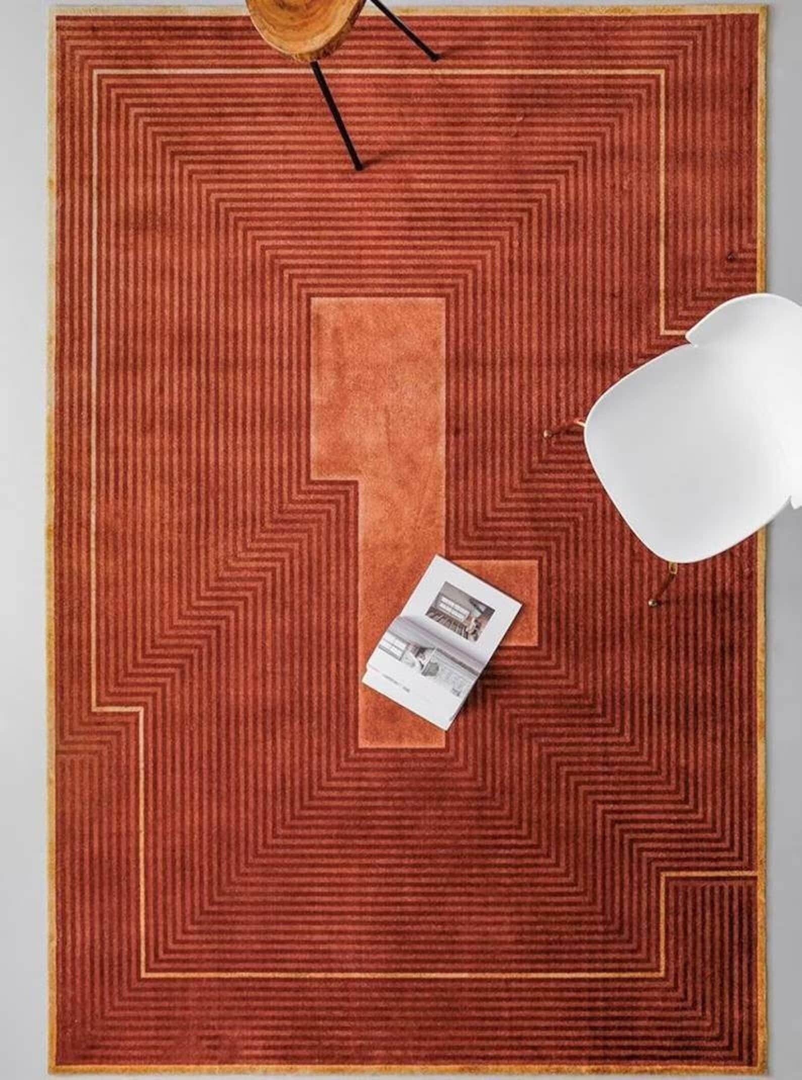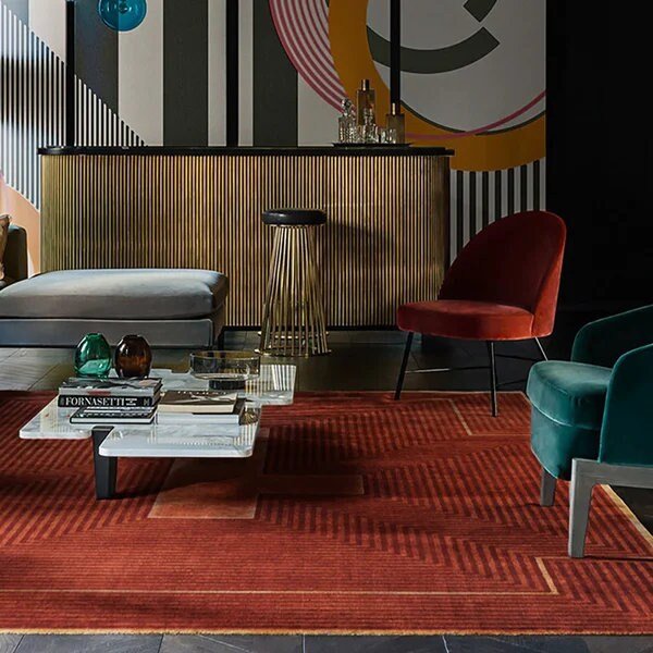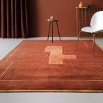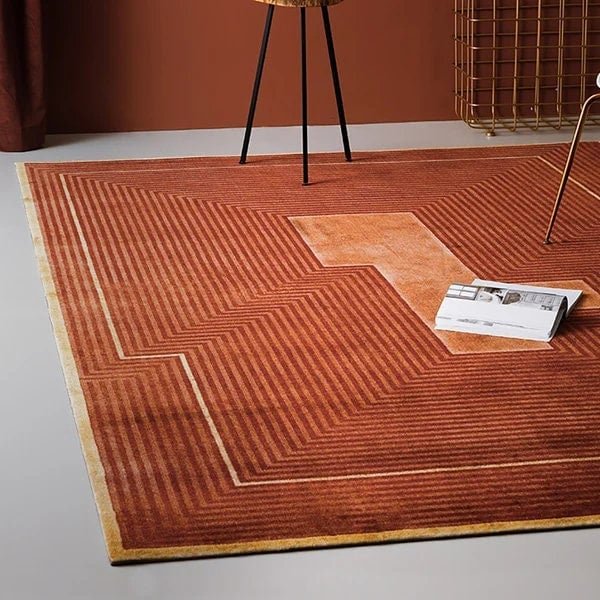 Rust Color Geometric Modern Soft Wool Rug