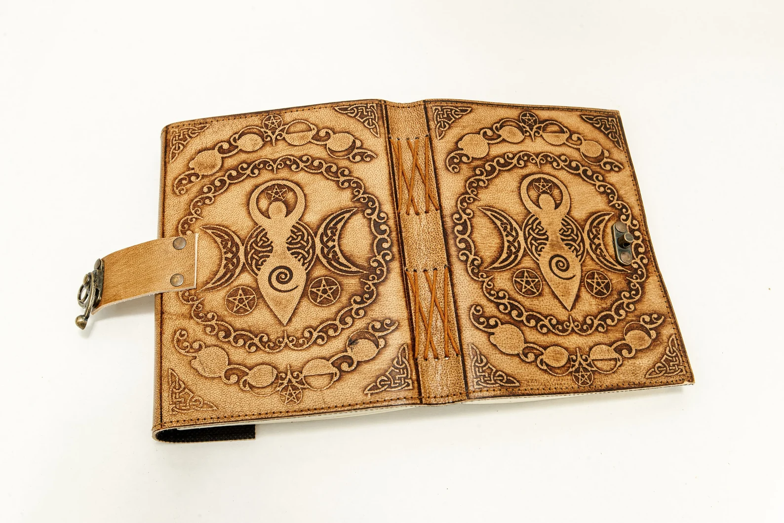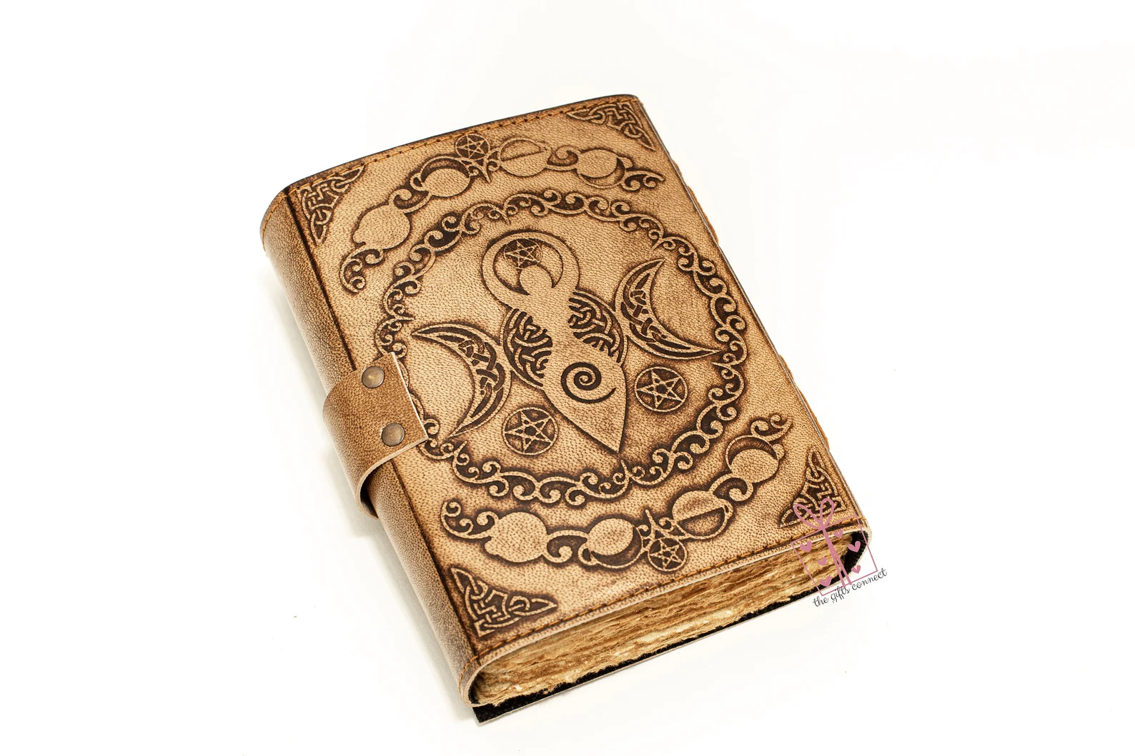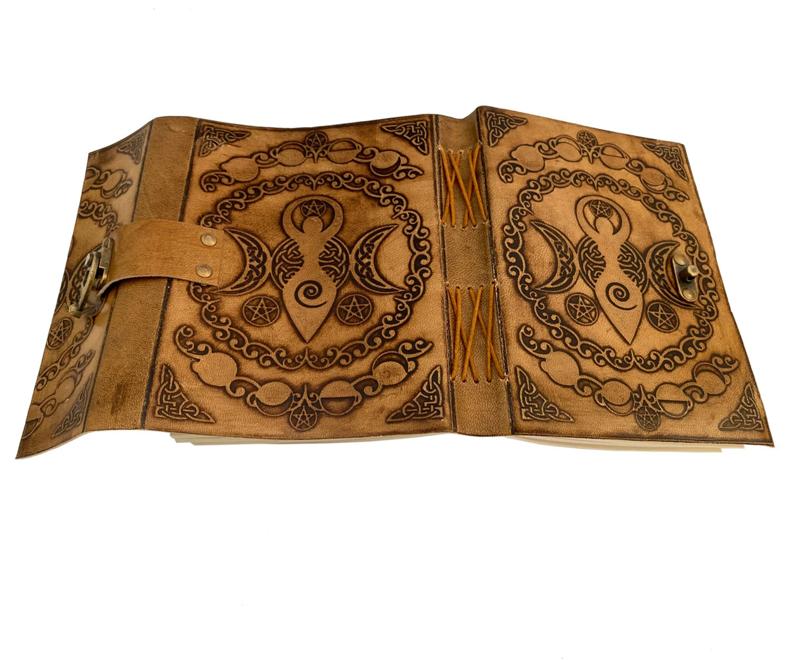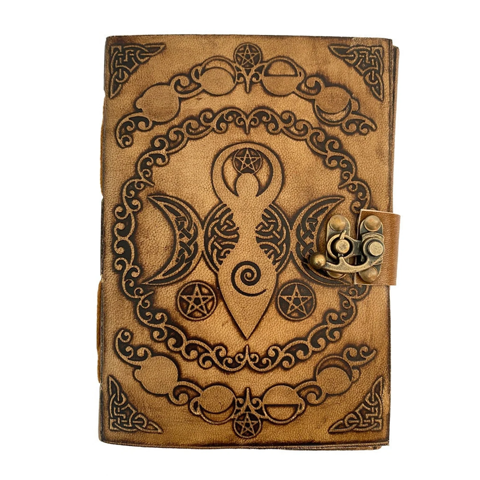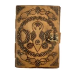 Unleash your inner magic with this handcrafted leather journal, featuring an intricately embossed Triple Crescent Moon and Pentagram—symbols of divine feminine energy, protection, and spiritual awakening. Designed for witches, mystics, and free spirits, this Book of Shadows is the perfect sanctuary for your thoughts, spells, sketches, and sacred rituals.
