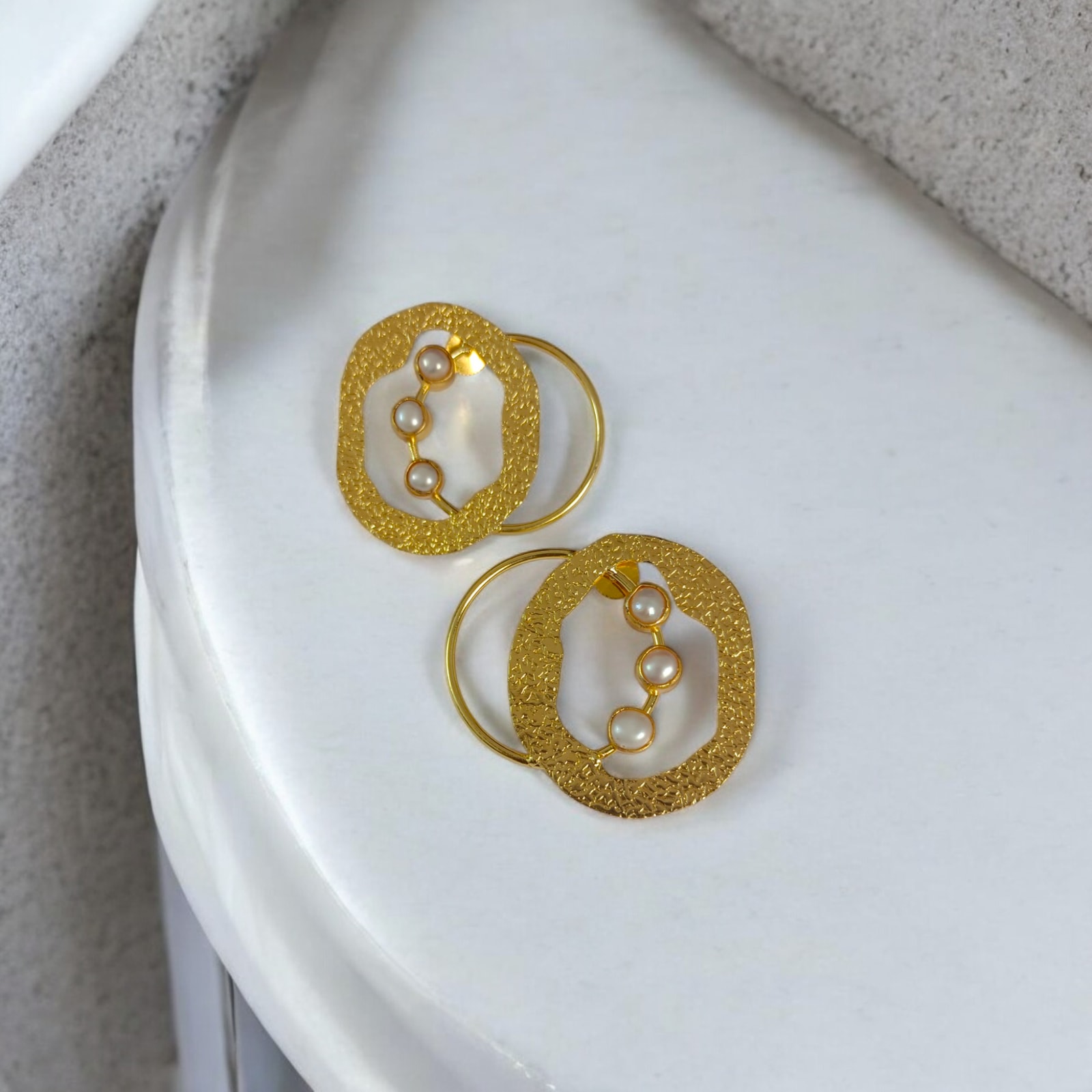 Step into timeless elegance with these handcrafted vintage-inspired filigree earrings, delicately shaped in radiant brass and accented with luminous pearls. Each pair is a little work of art—where old-world charm meets modern grace. The intricate filigree design captures the romance of antique jewelry, while the soft glow of hand-set pearls adds a gentle, feminine touch.