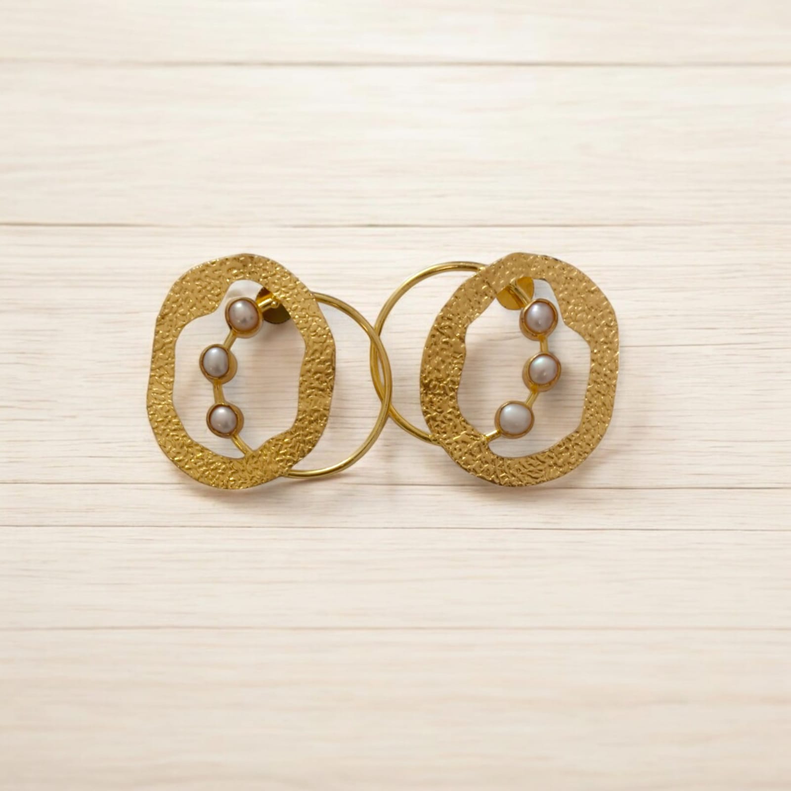 Vintage-Inspired Filigree Brass Earrings with Pearls