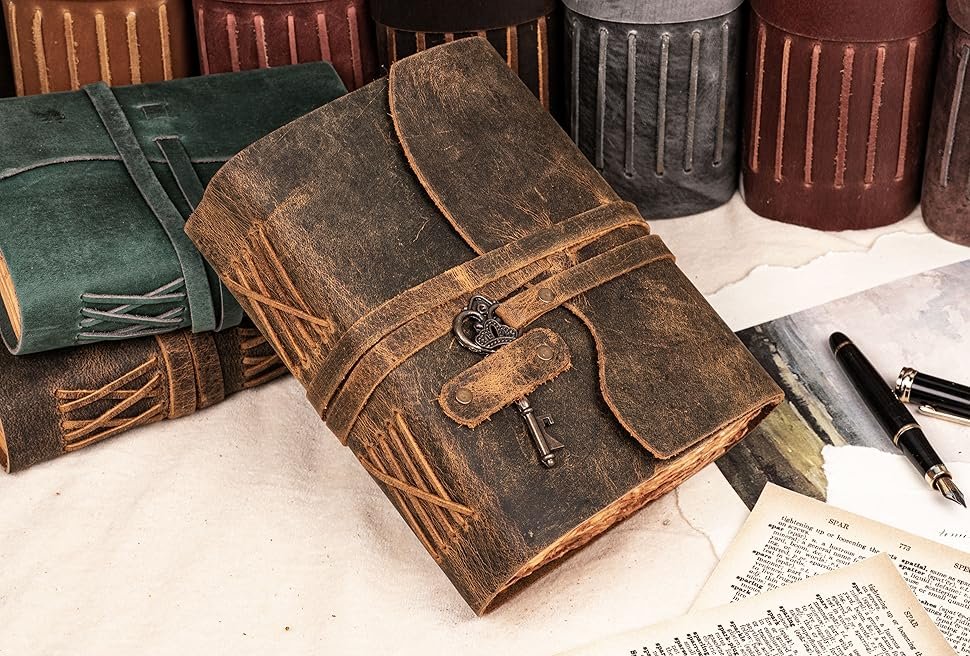 - Leather Journals: Our leather journals are made from the finest full-grain leather, sourced from sustainable and ethical suppliers. Each journal is hand-stitched and designed to age beautifully over time, developing a unique patina that tells your story.